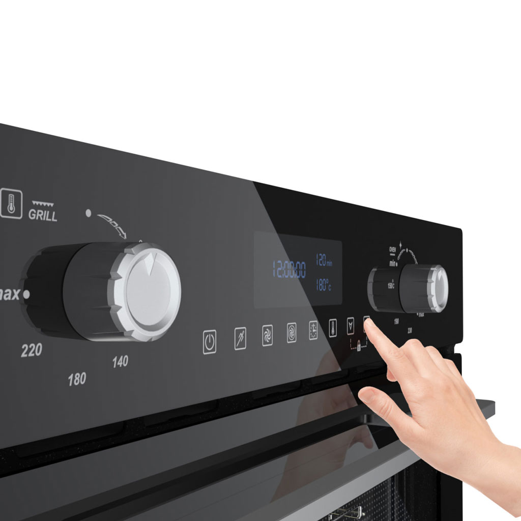 این فر با نمای شیشه سکوریت مشکی و طراحی ساده جلوهای کلاسیک و مقاوم دارد. ترکیب پنل مکانیکی و لمسی باعث شده کاربری آن هم سنتی و هم مدرن باشد.