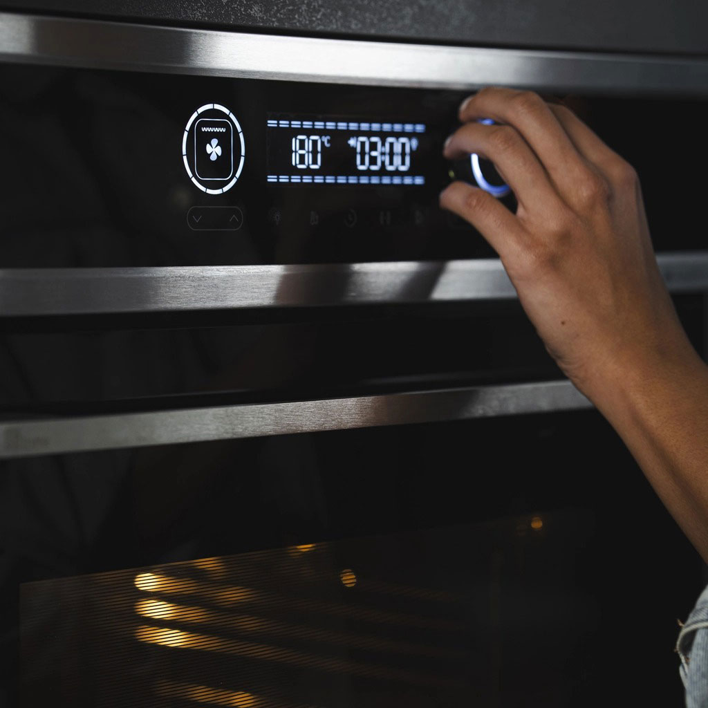 مدل STONE M با ترکیب شیشه مشکی براق و استیل ضد زنگ، جلوهای مدرن و لوکس به آشپزخانه میبخشد. استفاده از شیشه سه جداره LOW-E ساخت اتریش علاوه بر زیبایی، ایمنی و مقاومت بالایی را تضمین میکند. پنل لمسی دیجیتال همراه با ولوم فول تاچ تجربهای کاربرپسند و حرفهای را فراهم میآورد. درب آرامبند و طراحی ارگونومیک دستگیرهها نیز راحتی کاربری و ظرافت طراحی را نشان میدهد.