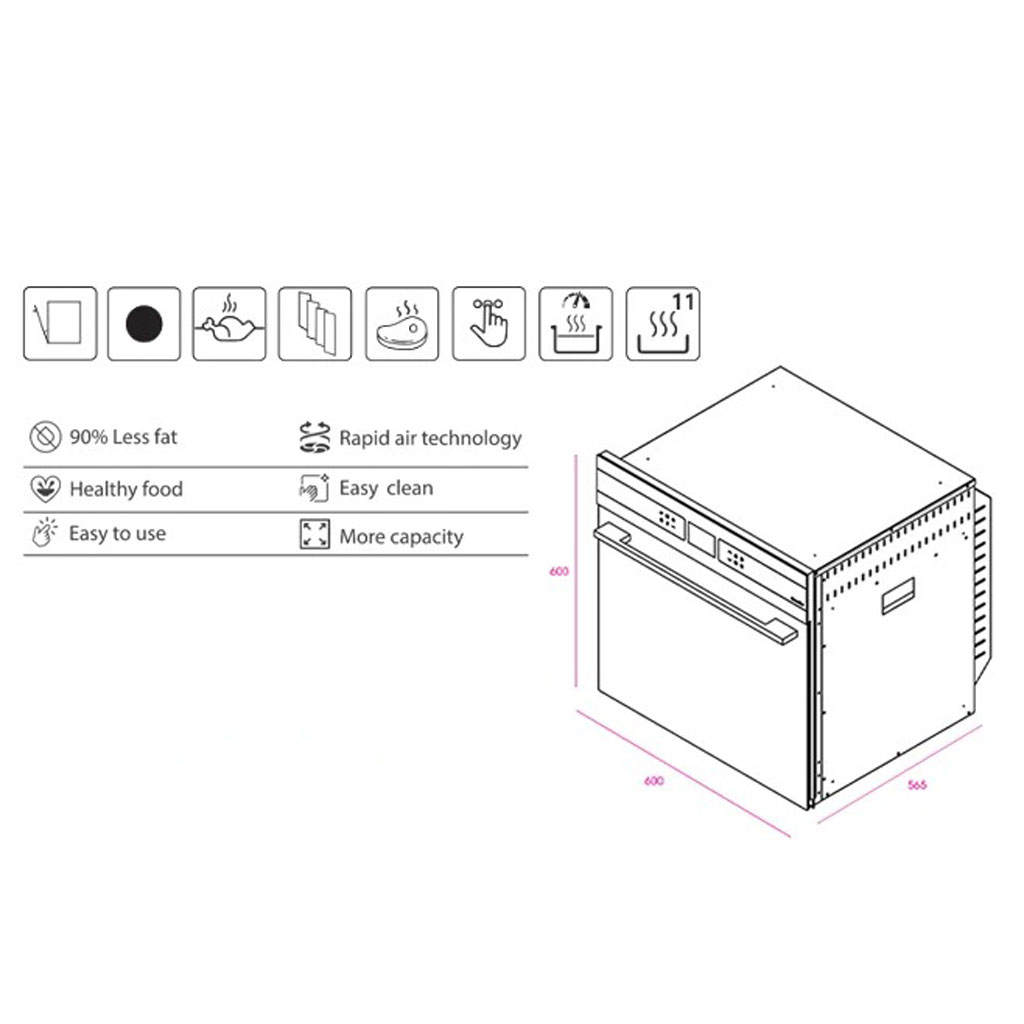 این فر با ظرفیت 65 لیتری و 11 برنامه پخت متنوع، امکان آمادهسازی طیف گستردهای از غذاها را فراهم میکند. وجود فن گردش هوای داغ، جوجهگردان و سنسور پخت گوشت باعث میشود غذاها بهطور یکنواخت و کامل پخته شوند. قابلیت اتصال Wi-Fi نیز امکان کنترل هوشمند و راحتتر دستگاه را فراهم میسازد.