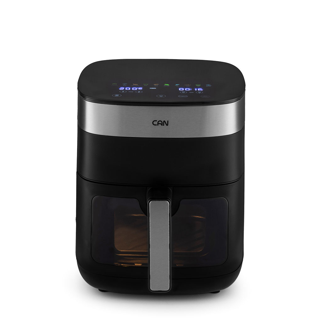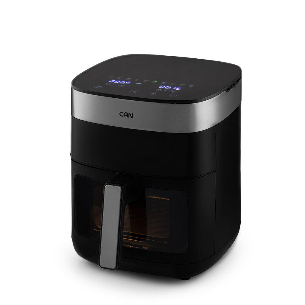 هواپز کن مدل 2054BT با طراحی مدرن و رنگ مشکی، جلوهای شیک به آشپزخانه میدهد. وجود پنل لمسی دیجیتال در قسمت بالایی دستگاه باعث سهولت در تنظیم دما و زمان میشود. بخش شیشهای جلویی همراه با چراغ داخلی امکان مشاهده وضعیت پخت غذا را بدون باز کردن درب فراهم میکند.