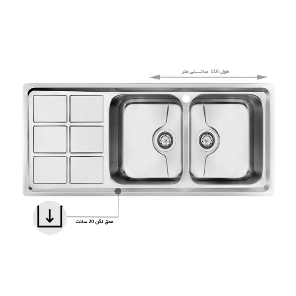 عمق (Deep) سینی و سطح سینک جهت عدم نفوذ آب در هنگام نظافت بر روی سطح کابینت