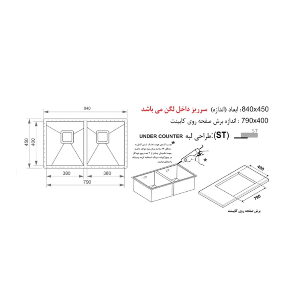 سینک ظرفشویی زیر کورینی اخوان مدل 411