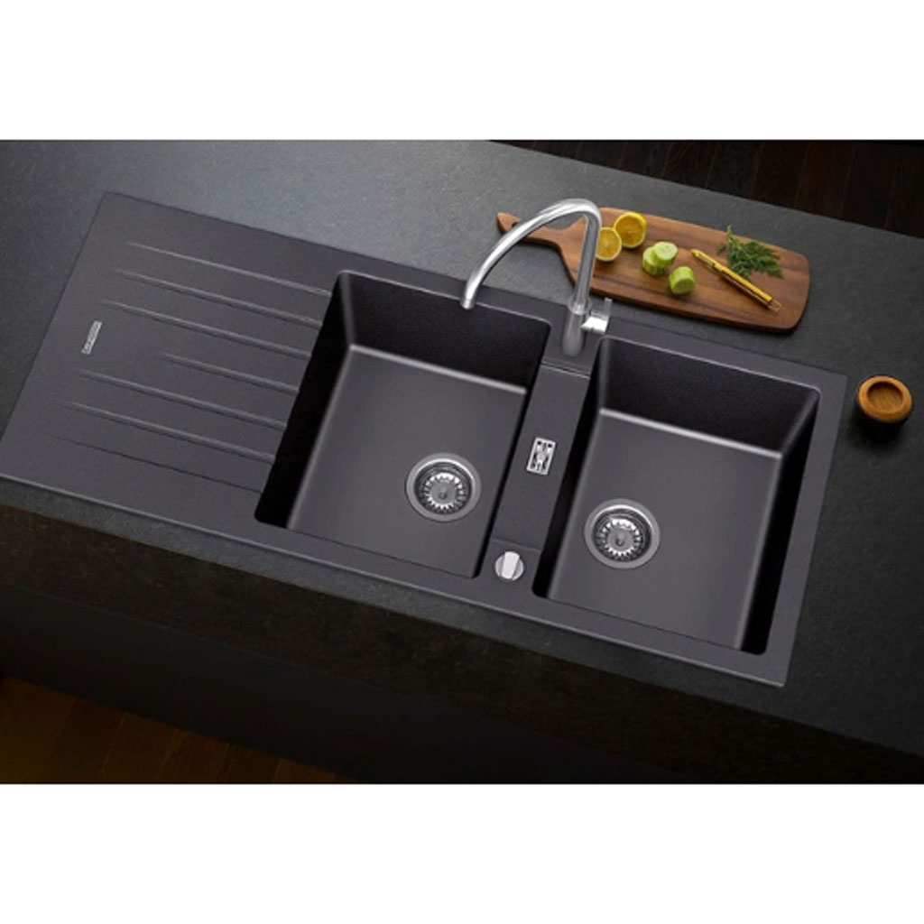 ویژگی های سینک 80%سنگ گرانیت و 20%رزین و رنگ, بهداشتی, تحمل دما تا 280 درجه سانتی گراد, مقاومت بسیار زیاد در برابر خط و خش, مقاومت بسیار زیاد در برابر ضربه, آنتی باکتریال