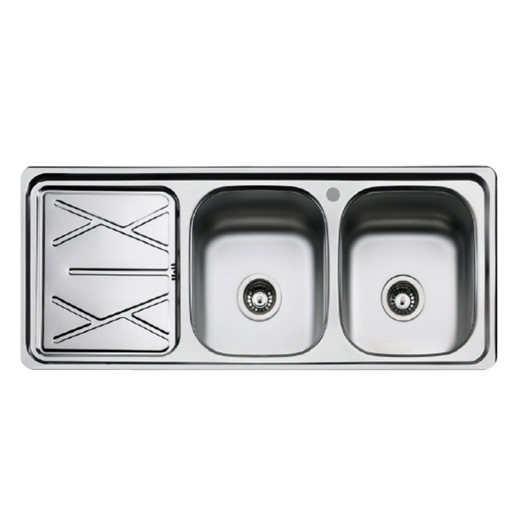 – سینک نیمه فانتزی توکار دو لگن یک سینی – سایز 1220mm×500mm – عمق لگن 170mm – دارای سیفون و نوار آب بندی