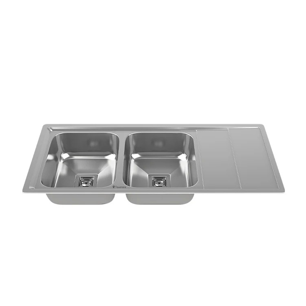 سینک داتیس مدل 211 با طراحی کاملاً توکار، پس از نصب سطحی یکپارچه و صاف ایجاد میکند که علاوه بر زیبایی، تمیزکاری اطراف سینک را بسیار آسان میسازد. دو لگن بزرگ و عمیق آن فضای کافی برای شستشوی ظروف بزرگ مانند قابلمه و دیگ فراهم میکند.