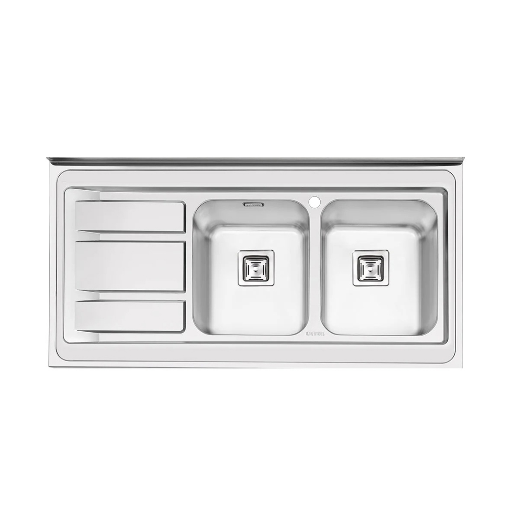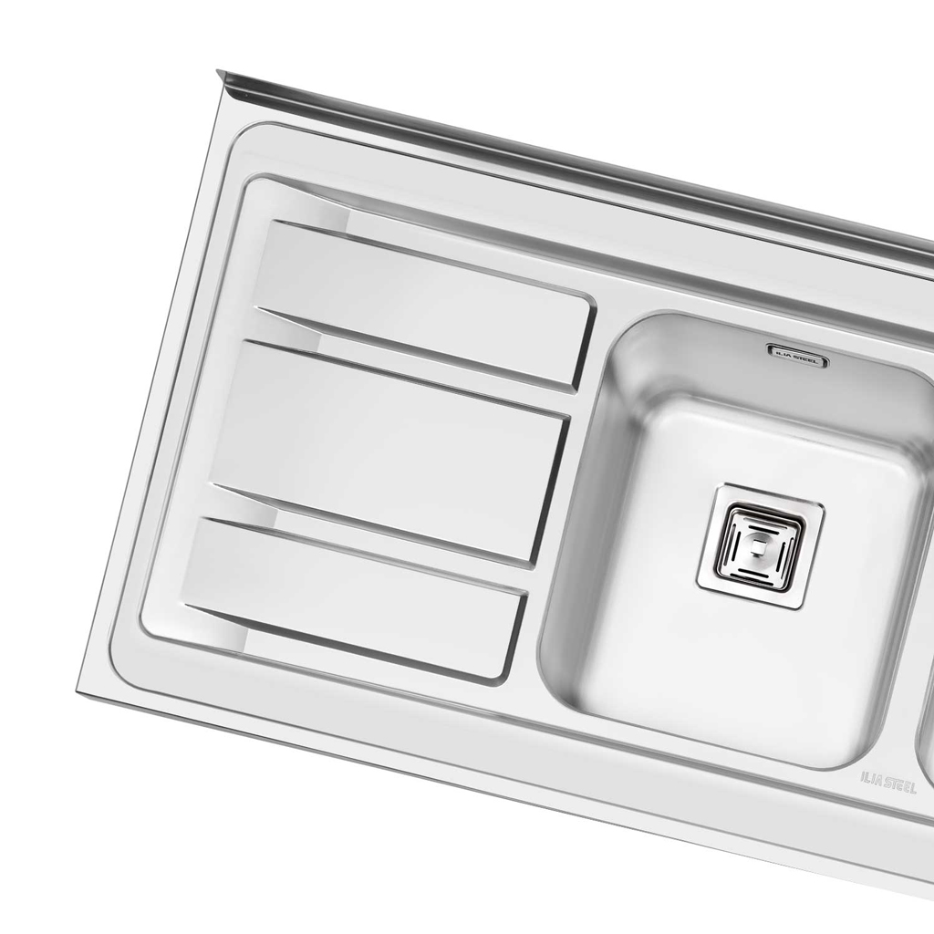 سینک ایلیا استیل مدل 1086 با طراحی روکار، ظاهری کلاسیک و در عین حال مدرن به آشپزخانه میدهد. دو لگن بزرگ و عمیق آن فضای کافی برای شستشوی ظروف بزرگ مانند قابلمه و دیگ فراهم میکند. استفاده از استیل ضدزنگ 304 باعث شده این سینک در برابر رطوبت، خطوخش و مواد شوینده دوام بالایی داشته باشد و ظاهر براق خود را حفظ کند.