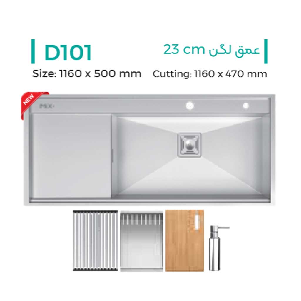 سینک دستساز میکس پلاس کد D101 با طراحی مدرن، ورق استیل ضد زنگ 304 و لوازم جانبی کامل، انتخابی ایدهآل برای آشپزخانههای شیک و امروزی است. این محصول علاوه بر زیبایی و دوام بالا، با گارانتی 5 ساله، تجربهای مطمئن و حرفهای از کاربری روزمره را فراهم میکند.