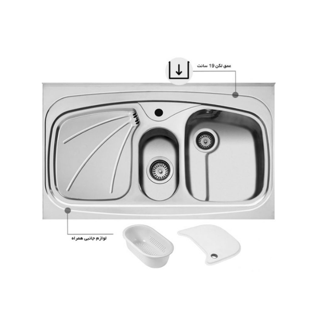 سینک ۱.۵ لگنه کد ۲۳ اخوان با طراحی هوشمندانه خود، انتخابی عالی برای خانوادههایی است که به دنبال ترکیبی از فضای کافی برای شستشو و امکانات جانبی هستند. لگن اصلی با عمق ۱۷ سانتیمتر فضای مناسبی برای شستشوی انواع ظروف روزمره فراهم کرده است. میوهشور مجزا نیز امکان شستشوی بهداشتی سبزیجات و میوهها را به طور جداگانه فراهم کرده و از آلودگی متقابل جلوگیری میکند. سینی کناری نیز فضایی برای قرار دادن ظروف شسته شده یا خشککن ایجاد کرده و نظم و کارایی را به محیط کار شما میآورد. سوراخ نصب شیر بر روی بدنه سینک تعبیه شده است.