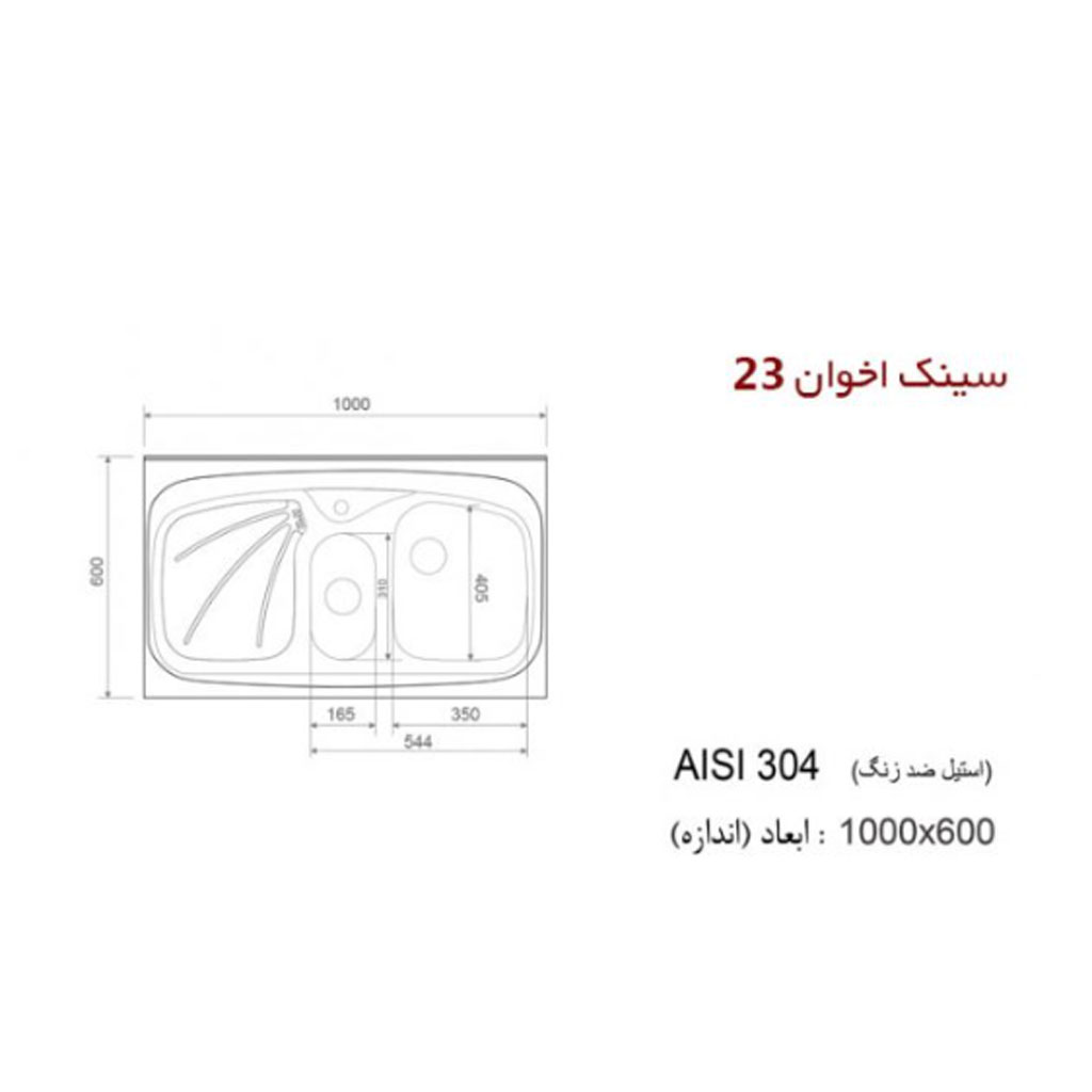 سینک ظرفشویی روکار کد ۲۳ اخوان با استفاده از ورق استیل ضد زنگ AISI 304 با ضخامت ۰.۸ میلیمتر تولید شده است. این آلیاژ مرغوب مقاومت عالی در برابر زنگزدگی، خوردگی، خط و خش و مواد شوینده داشته و دوام بالای محصول را در طولانی مدت تضمین میکند. از خصوصیات مهم این سینک میتوان به ضد خش بودن آن اشاره کرد و نظافت و نگهداری راحتتر از ویژگیهای آن محسوب میگردد. قابل ذکر است که در کف لگنها فوم جذب صدا نصب شده و باعث میشود تا از ایجاد سروصدای ناهنجار هنگام برخورد آب به سطح سینک جلوگیری به عمل آید.