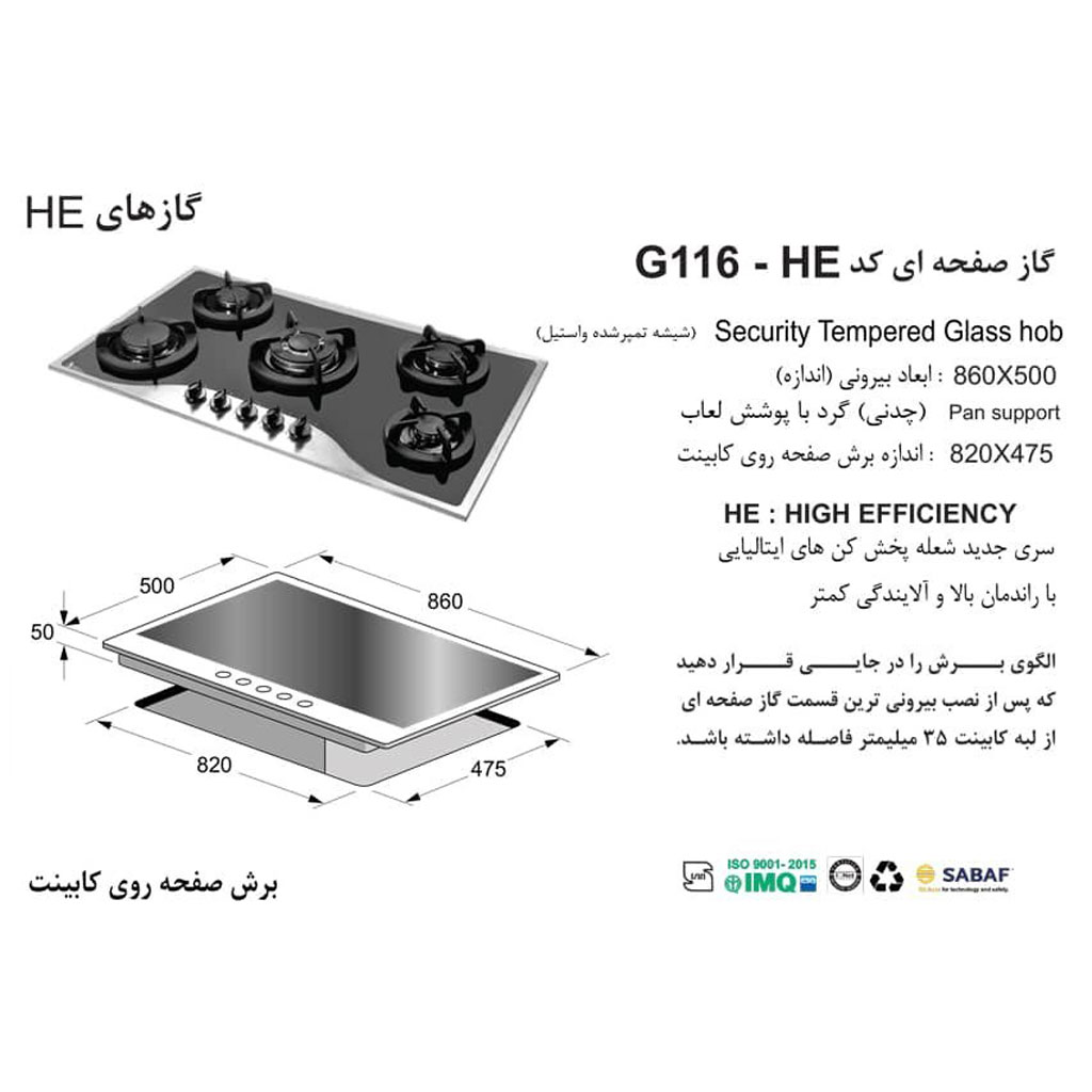 نام محصول: گاز رومیزی استیل شیشه اخوان مدل G116 HE