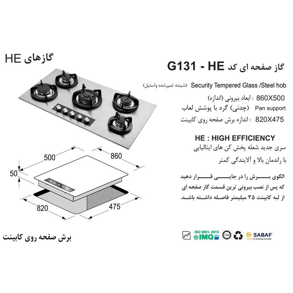 کلید تمایز و عملکرد ممتاز گاز G131 به کارگیری قطعات اصلی ساخت شرکت ایتالیایی معتبر ساباف SABAF است. این قطعات که شامل سرشعله ها فندک الکتریکی ترموکوپل و وک می شوند مطابق با استانداردهای اروپایی طراحی و تولید شده اند. استفاده از سرشعله های ویژه پخش کن های HE باعث افزایش چشمگیر راندمان حرارتی می شود. به گزارش نمایندگی رسمی اخوان این فناوری می تواند تا ۲۵ درصد راندمان احتراق را نسبت به استانداردهای معمول افزایش دهد. این افزایش راندمان به معنای گرمایش سریع تر صرفه جویی در مصرف گاز و در نهایت کاهش هزینه های انرژی برای مصرف کننده است.