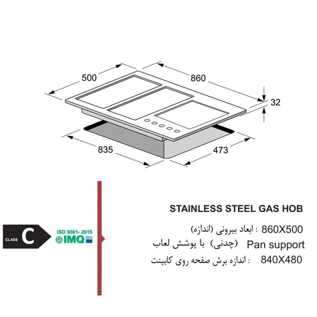 مدل محصول: گاز رومیزی اخوان جی 135 اس| Akhavan Built-in gas G 135 SXL