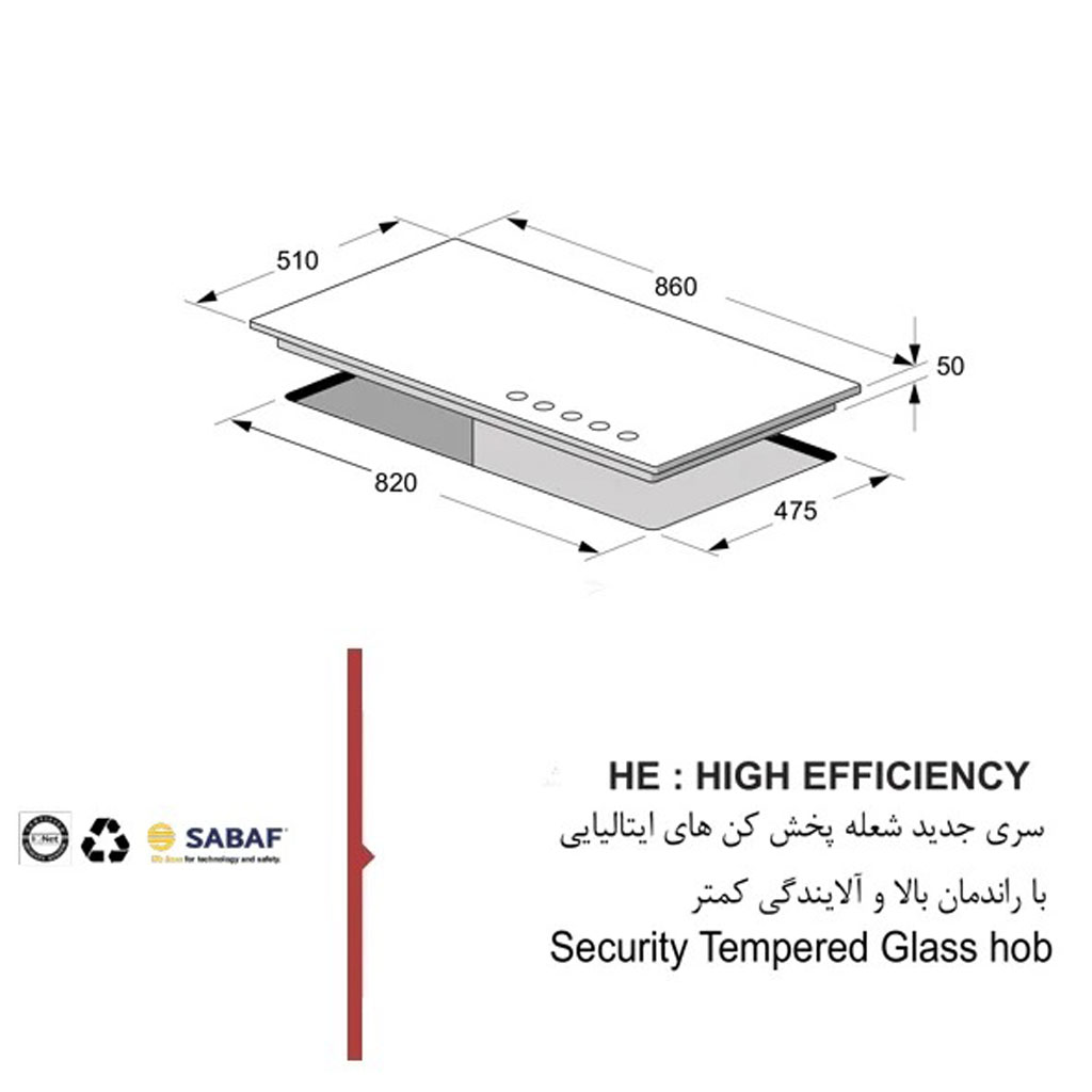 تمایز اصلی و مایه افتخار مدل G35S-HE، بهرهگیری از قطعات اصلی و شناختهشده ایتالیایی برند ساباف (SABAF) است. این قطعات که شامل سرشعله، شیرآلات و ترموکوپل میشوند، با استانداردهای سختگیرانه اروپایی تولید شدهاند. در مقایسه مستقیم، این مدل در تمامی ویژگیهای ظاهری و فنی (مانند ابعاد، طراحی صفحه و تعداد شعله) کاملاً مشابه مدل Gi35S است، با این تفاوت کلیدی که مدل Gi35S از قطعات ایرانی استفاده میکند. این انتخاب برتر در قطعات، در بلندمدت به معنای عملکرد پایدارتر، عمر مفید طولانیتر و راندمان حرارتی مطلوبتر است.