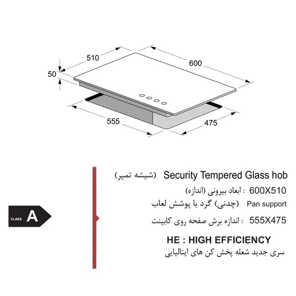 گاز صفحهای اخوان مدل G4 یک نمونه شاخص از محصولات کامپکت و باکیفیت این برند است که ثابت میکند ابعاد کوچک لزوماً به معنای چشمپوشی از کیفیت قطعات یا راندمان انرژی نیست. این مدل با ترکیب طراحی زیبا، قطعات مرغوب اروپایی و راندمان بالا، انتخابی ایدهآل برای آشپزخانههای کوچک با انتظارات بزرگ است. ویژگی بارز ظاهری گاز اخوان مدل G4، صفحه شیشه سکوریت مشکی آن است که با لبههای ۲ سانتیمتری ابزارخورده تزئین شده و ظاهری بسیار لوکس و مدرن به آشپزخانه میبخشد. این شیشه علاوه بر زیبایی، در برابر حرارت و ضربه مقاوم بوده و نظافت سطح صاف آن بسیار آسان است. ابعاد فشرده آن با طول ۵۸ سانتیمتر، آن را برای نصب در فضاهای محدود (کمتر از ۶۰ سانتیمتر) ایدهآل میسازد. البته توجه به این نکته ضروری است که این مدل برای نصب روی کابینتهایی با عرض دقیق ۵۰ سانتیمتر طراحی نشده و به فضای بیشتری نیاز دارد.