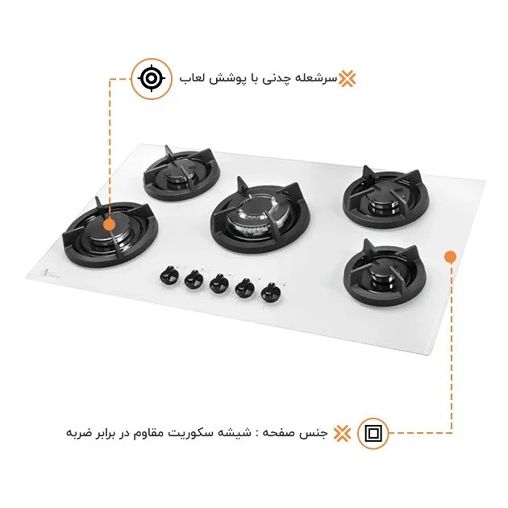 تعداد شعله: پنج شعله (1 شعله پلوپز، 1 شعله بزرگ، 2 شعله متوسط و 1 شعله کوچک)