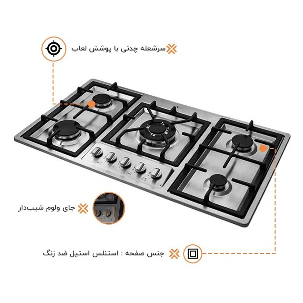تعداد شعله: پنج شعله ( یک شعله بزرگ , یک متوسط , دو کوچک , یک پلوپز )
