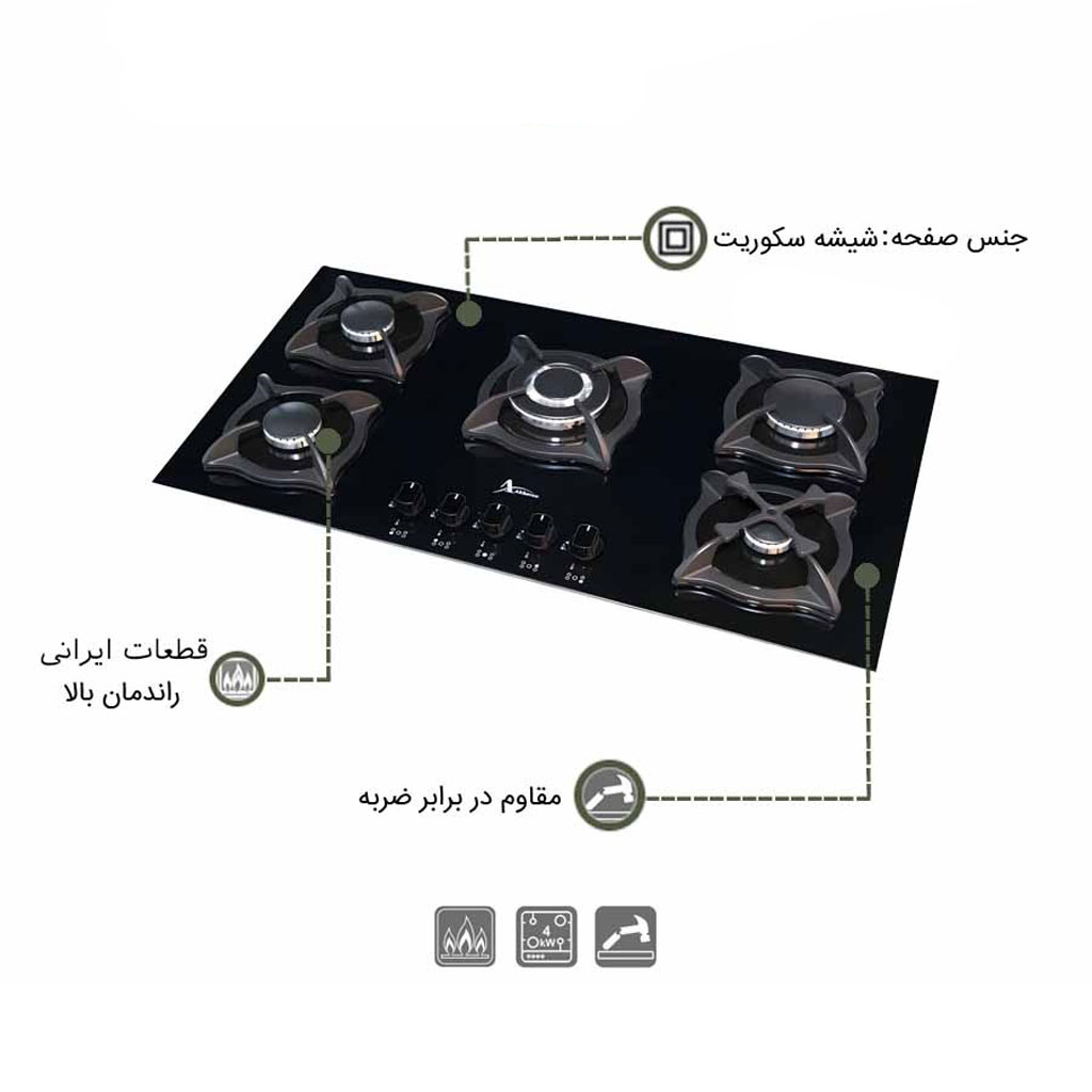 شعله ها: 1 شعله کوچک ، 2 شعله متوسط ، 1 شعله بزرگ و 1 شعله پلوپز