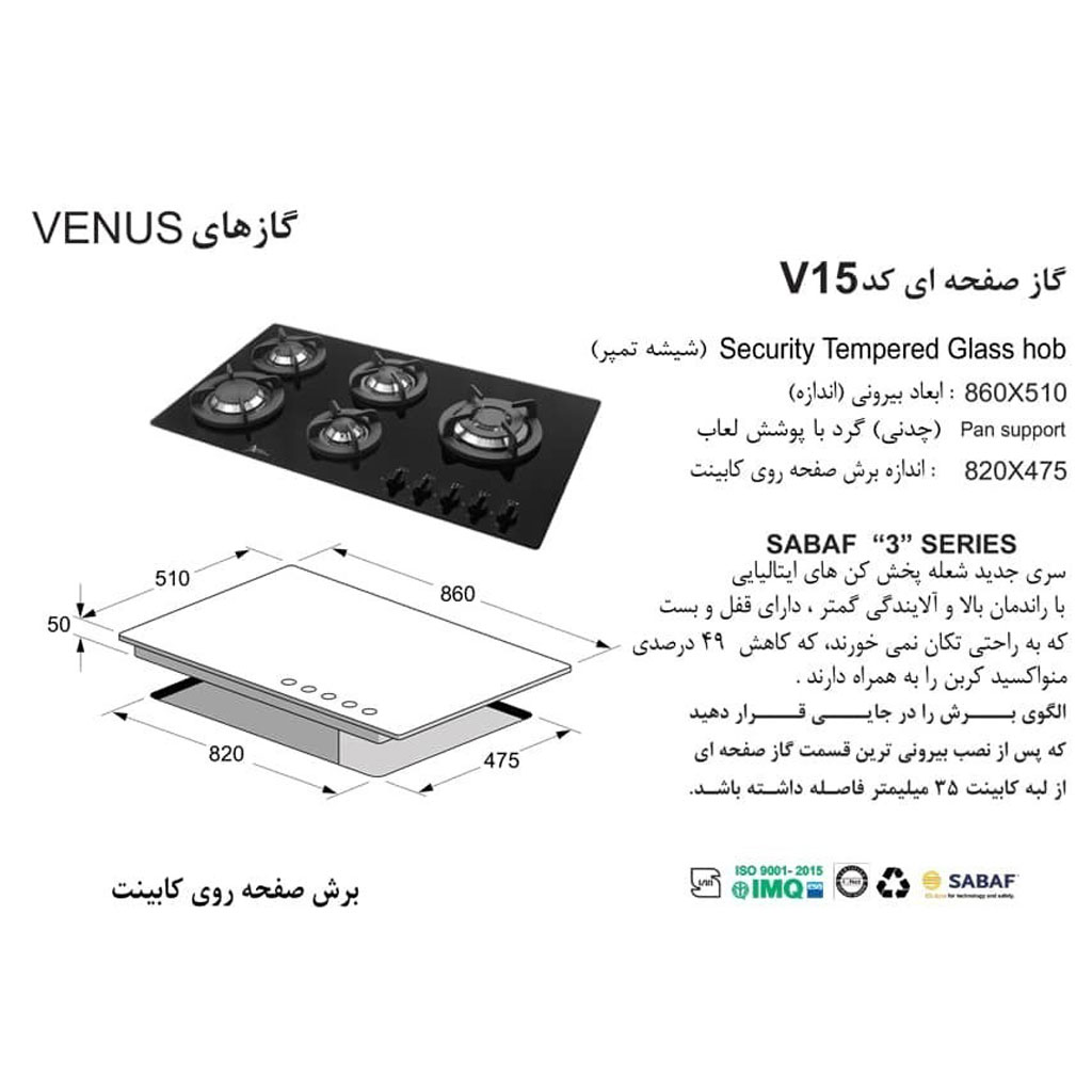 مدل محصول: گاز رومیزی اخوان ونوس 15 | Akhavan Built-in gas v15xl