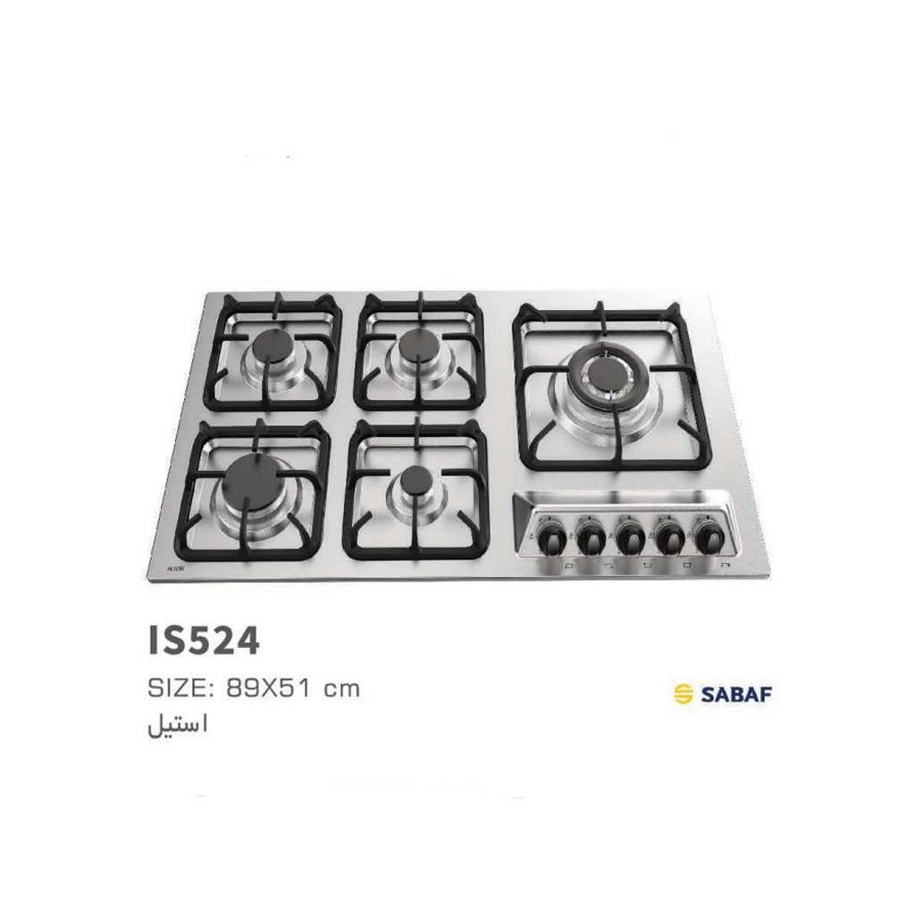 شعلههای گاز: پنج شعله (با سرشعله SABAF ایتالیایی، شامل شعله پلوپز)
