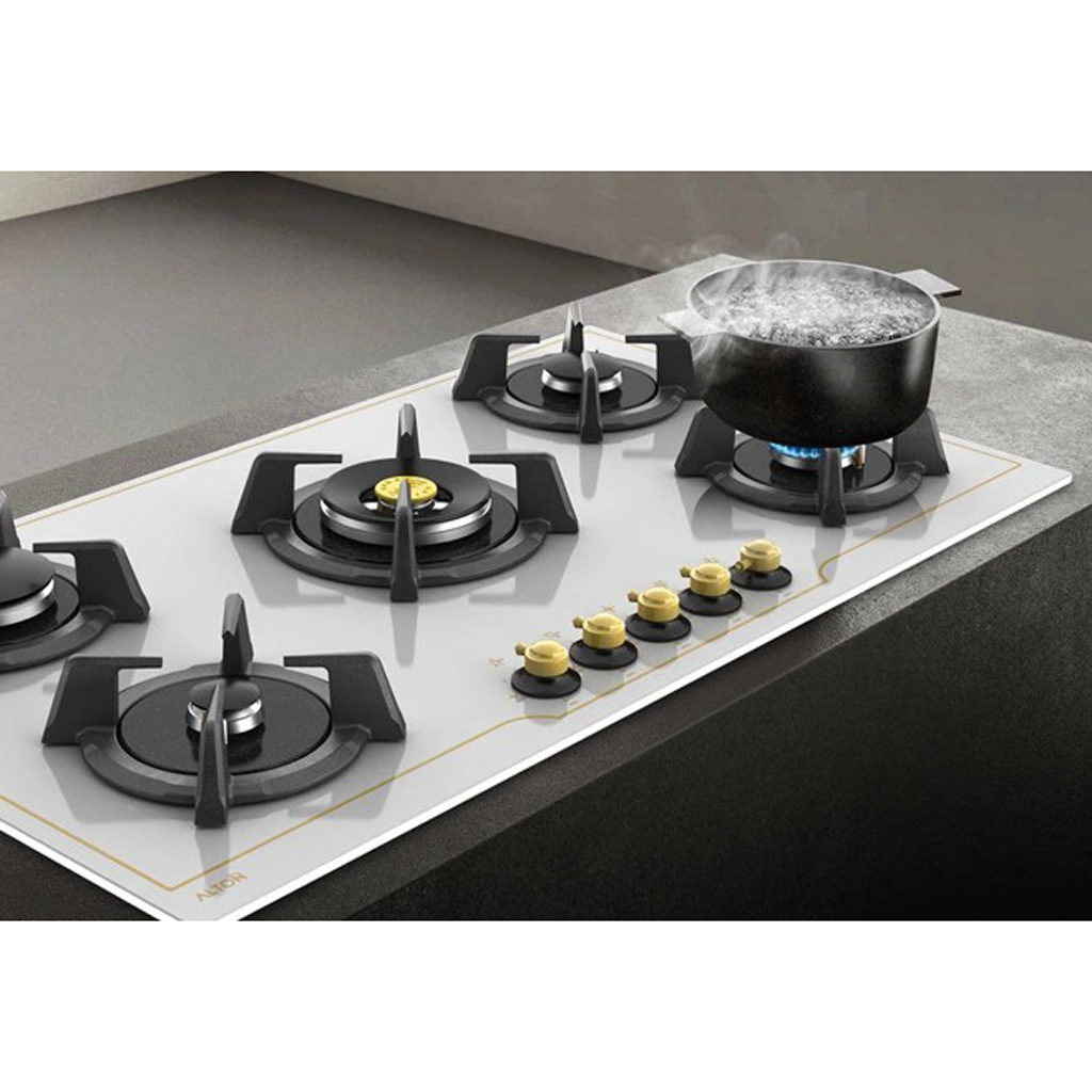 گاز رومیزی آلتون مدل IG540W با رنگ سفید و خطوط طلایی، طراحی لوکس و چشمنوازی را برای آشپزخانههای مدرن به ارمغان میآورد. گاز آلتون مدل IG540W با صفحه شیشه سکوریت مقاوم و ابعاد استاندارد ۹۰ در ۵۰ سانتیمتر، پنج شعله کاربردی دارد که شعله پلوپز در مرکز آن قرار گرفته است. یک ویژگی بارز این مدل، قابلیت ست شدن هماهنگ با فر و هود همنام برند آلتون است که میتواند هماهنگی زیبایی در دکور آشپزخانه ایجاد کند.