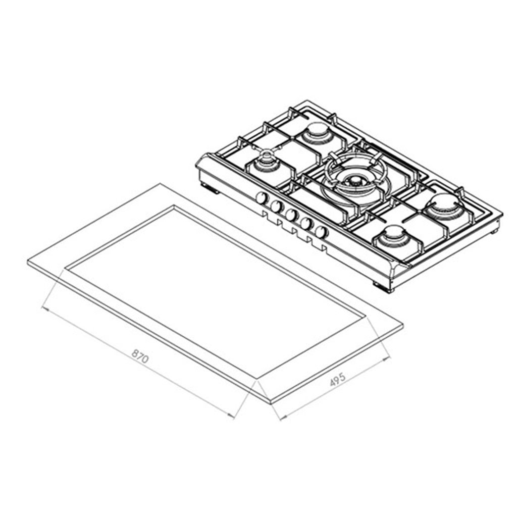 ابعاد برش (برای نصب توکار): ۸۷۰ × ۴۹۵ میلیمتر