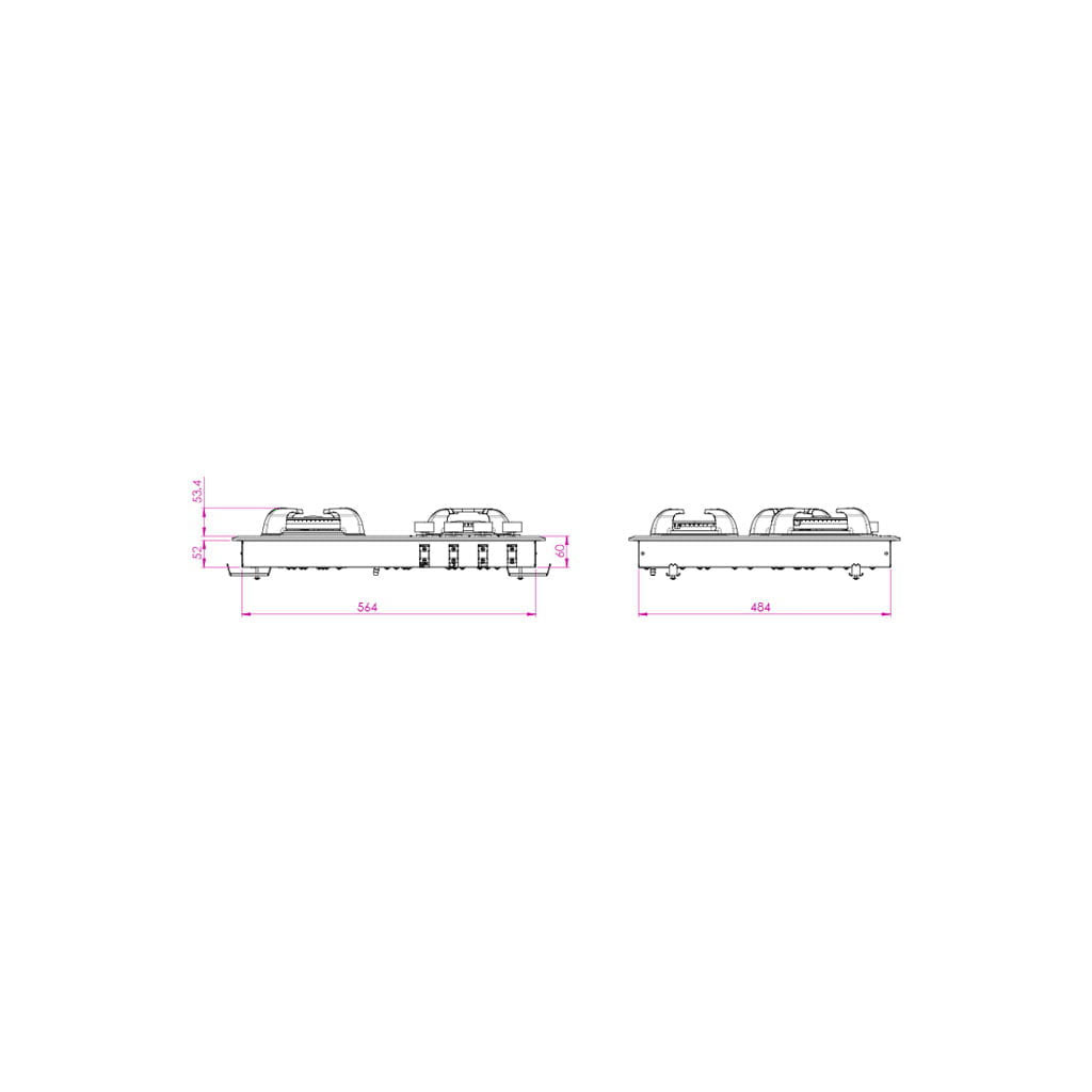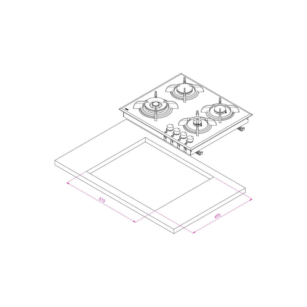 ابعاد برش (برای نصب توکار): ۵۷۵ × ۴۹۵ میلیمتر