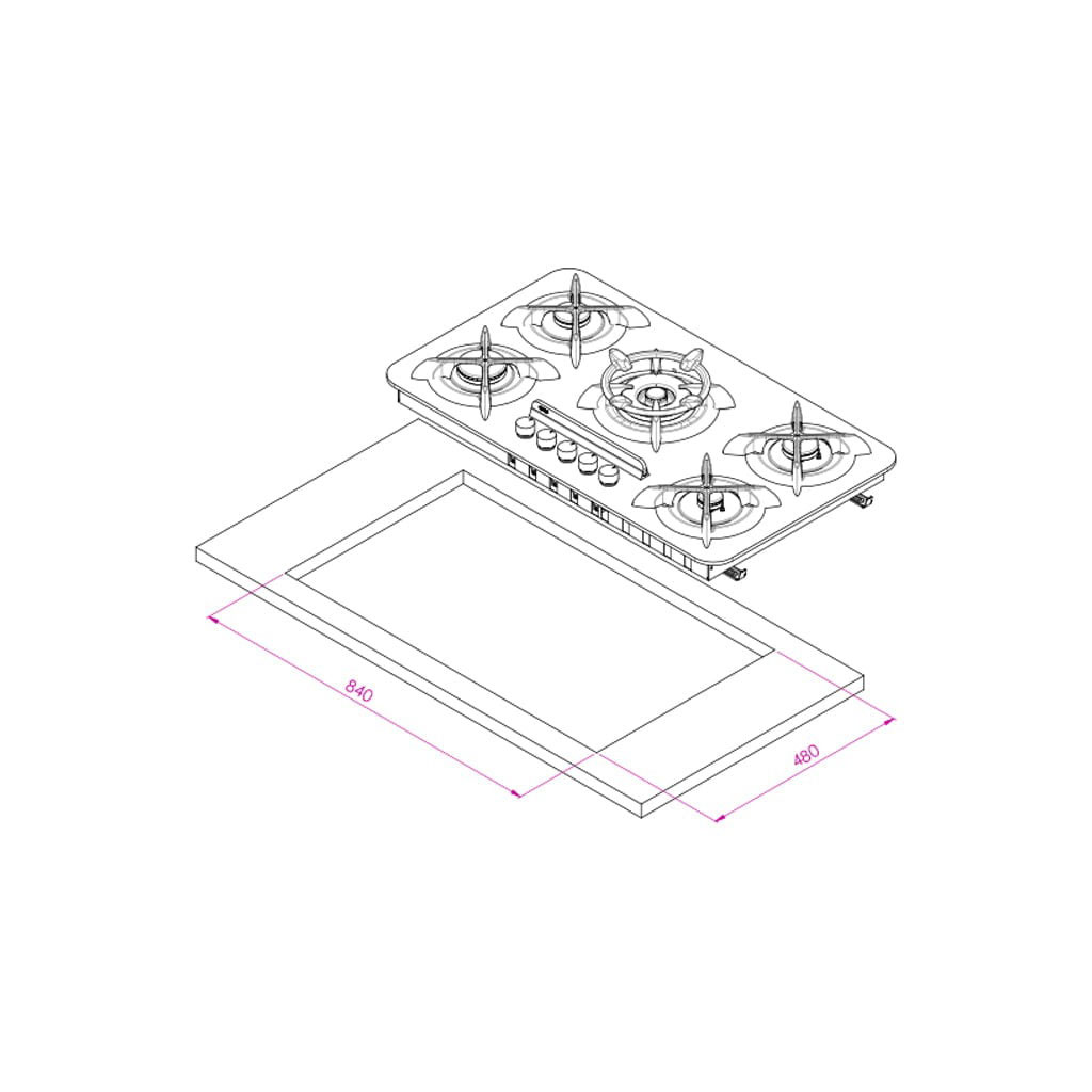 ابعاد برش (برای نصب توکار): ۸۴۰ × ۴۸۰ میلیمتر