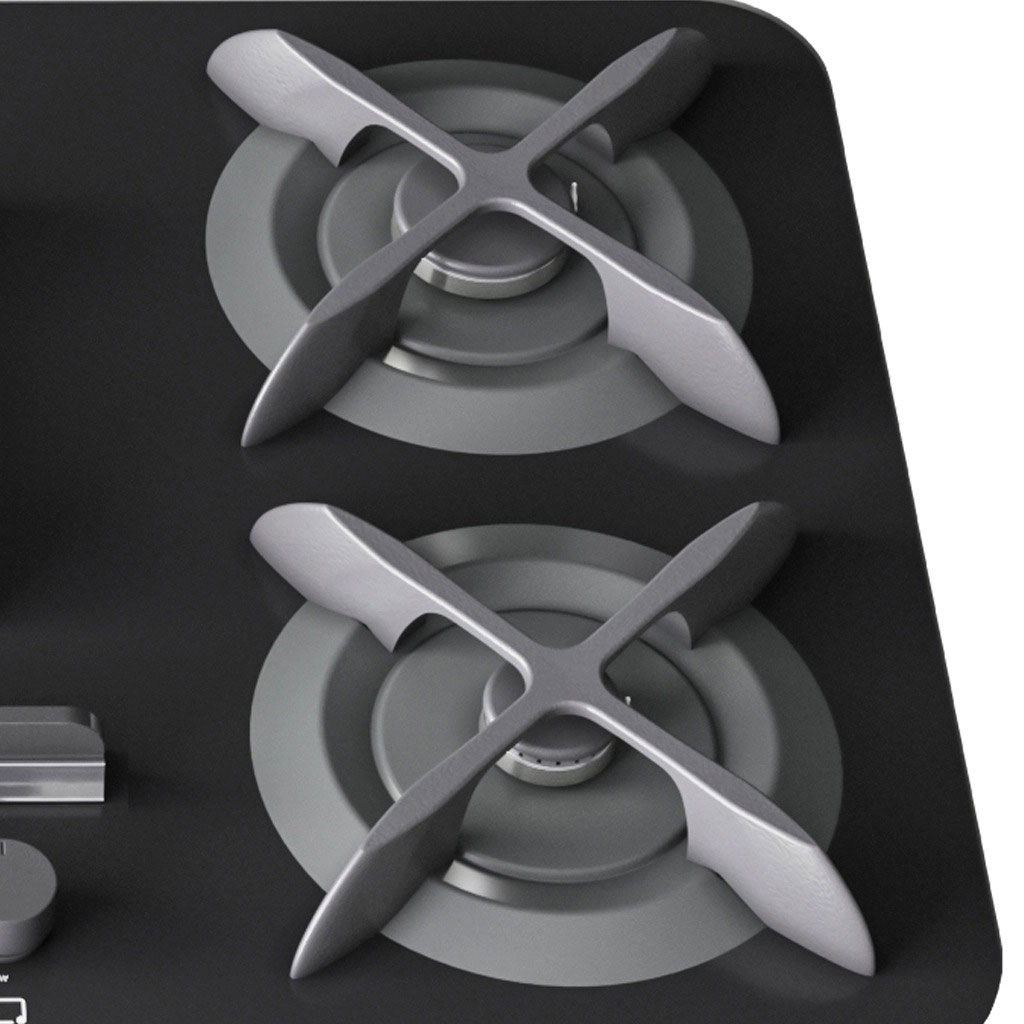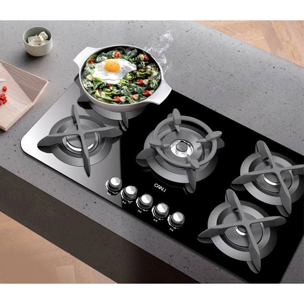 صفحه شیشه سکوریت در دو رنگ کلاسیک سفید و مشکی، امکان هماهنگی کامل با طیف گستردهای از طراحیهای آشپزخانه را فراهم میآورد. این سطح صاف و براق تمیزکاری بسیار آسانی دارد و ظاهری لوکس و امروزی به فضای آشپزخانه میبخشد. چیدمان استاندارد پنج شعله با پلوپز مرکزی نیز برای اکثر نیازهای پختوپز کافی است.