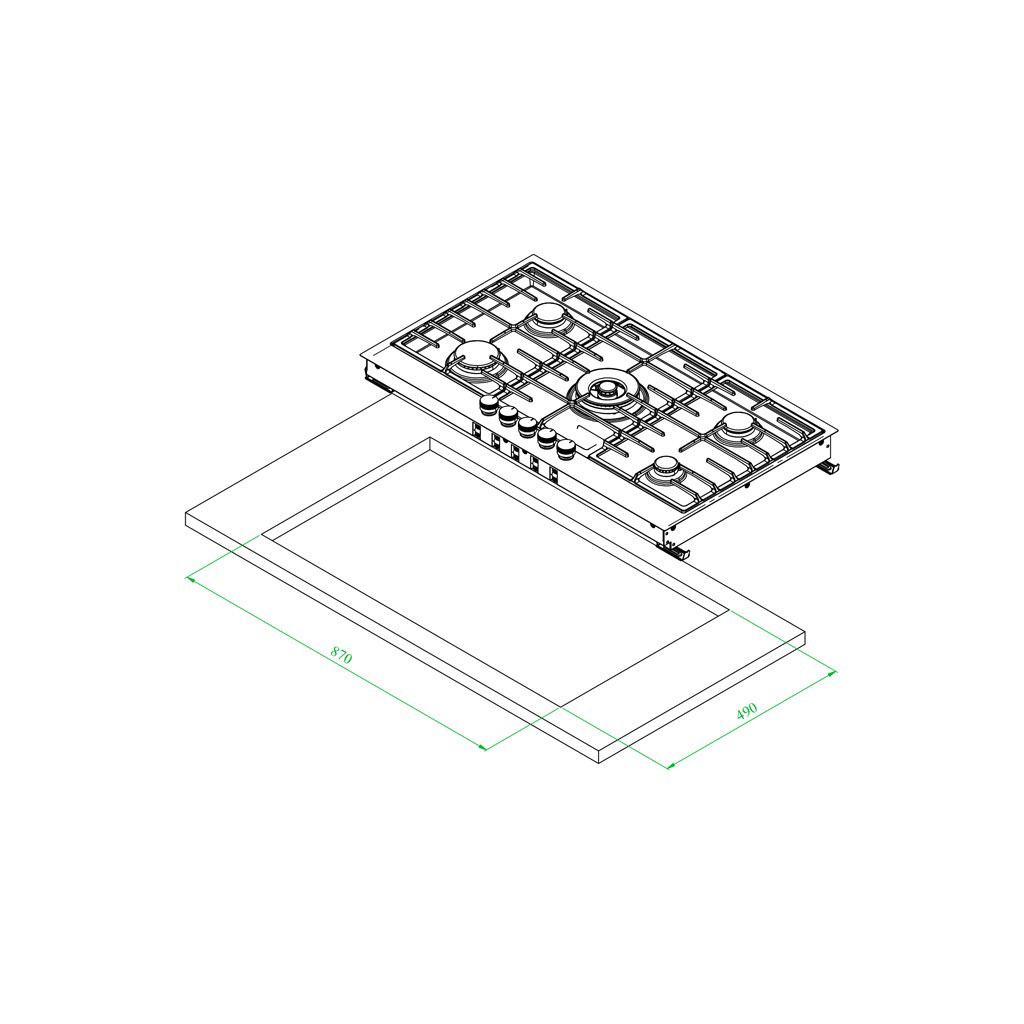 ابعاد برش (برای نصب توکار): ۸۷ × ۴۹ سانتیمتر