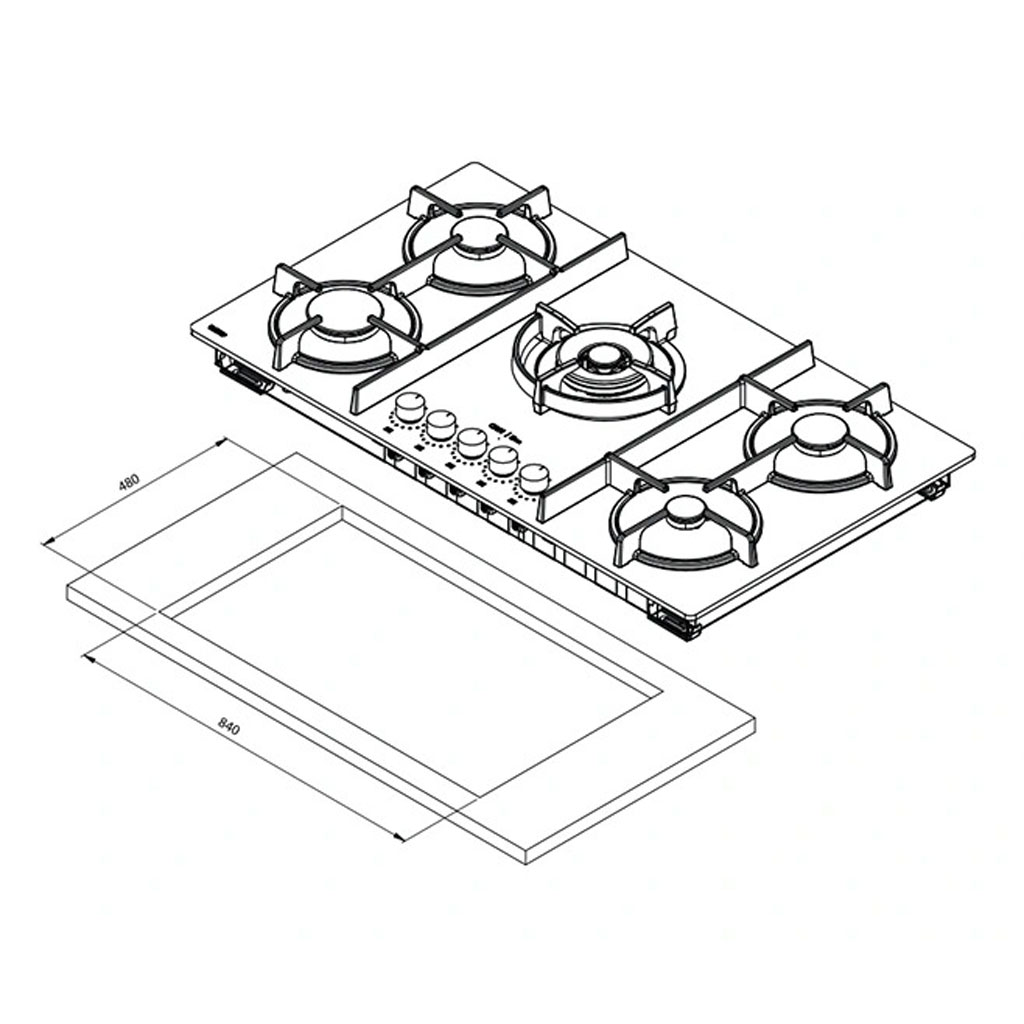 ابعاد برش (برای نصب توکار): ۸۴۰ × ۴۸۰ میلیمتر