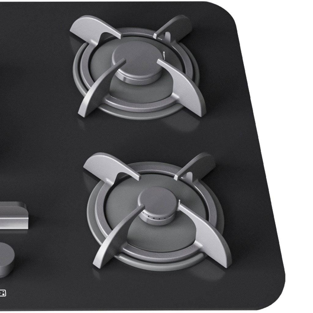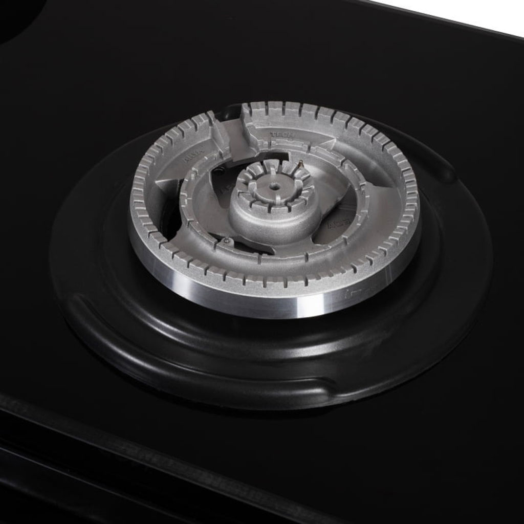 صفحه شیشه سکوریت مشکی با ابعاد استاندارد، جلوهای امروزی و هماهنگ با دکوراسیونهای مدرن به آشپزخانه میبخشد و به دلیل سطح صاف و غیرمتخلخل، تمیزکاری فوقالعاده آسانی دارد. چیدمان معمول پنج شعله با پلوپز مرکزی، امکان پختوپز همزمان چندین غذا را فراهم میآورد.