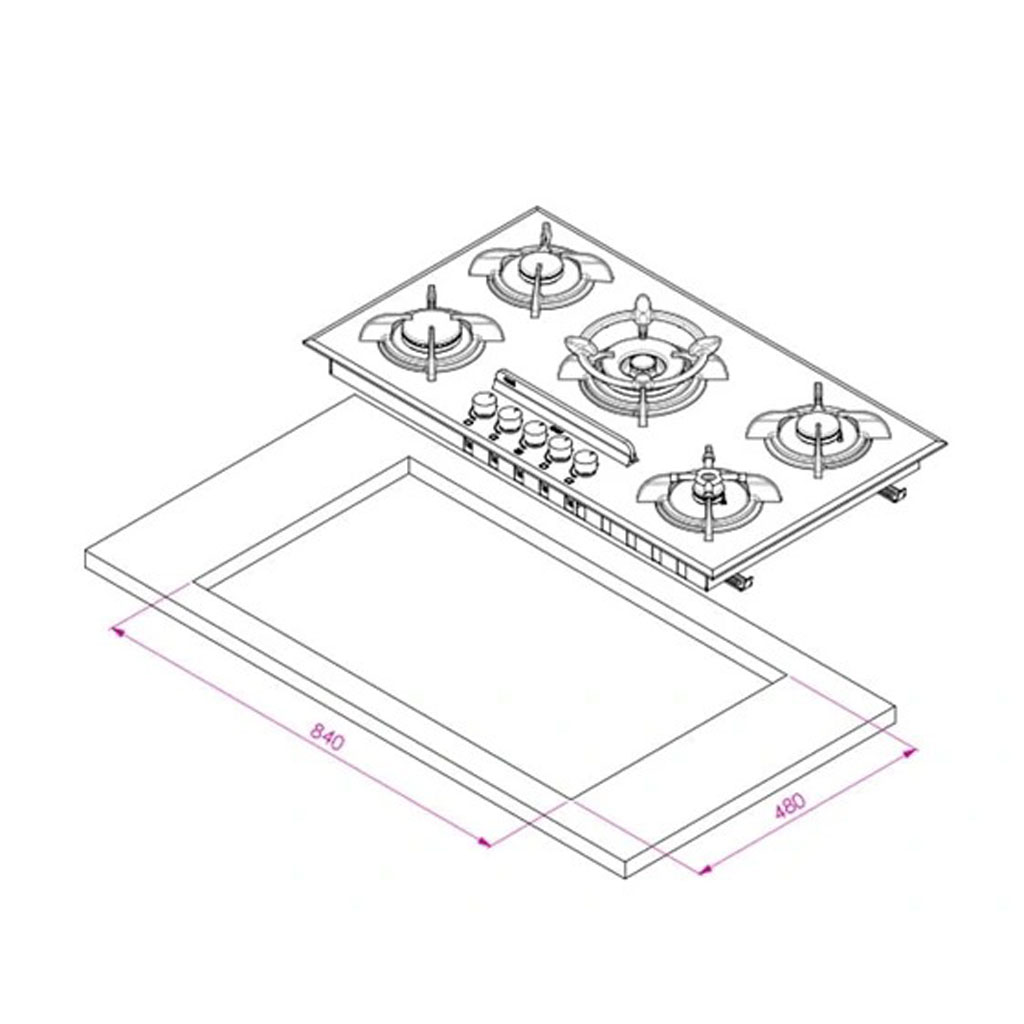 ابعاد برش (برای نصب توکار): ۸۴۰ × ۴۸۰ میلیمتر