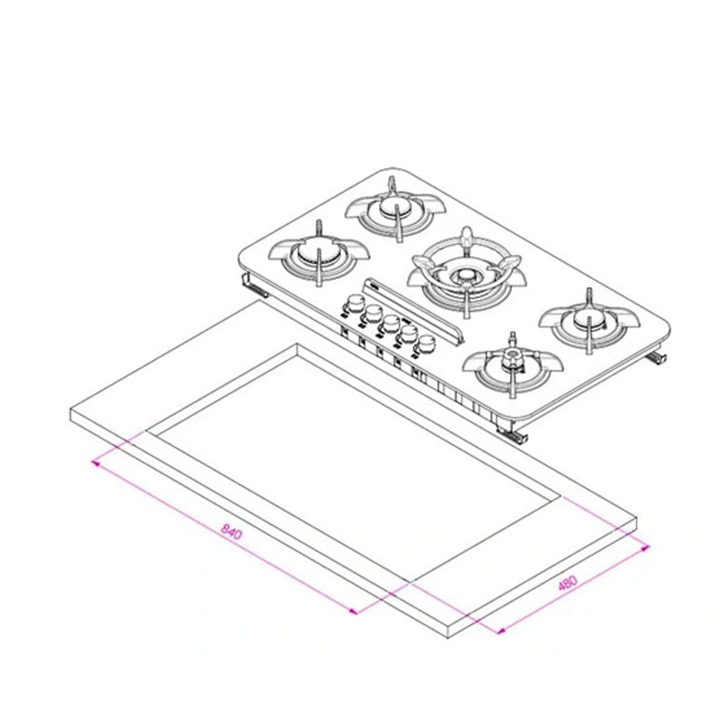 ابعاد برش (برای نصب توکار): ۸۴۰ × ۴۸۰ میلیمتر