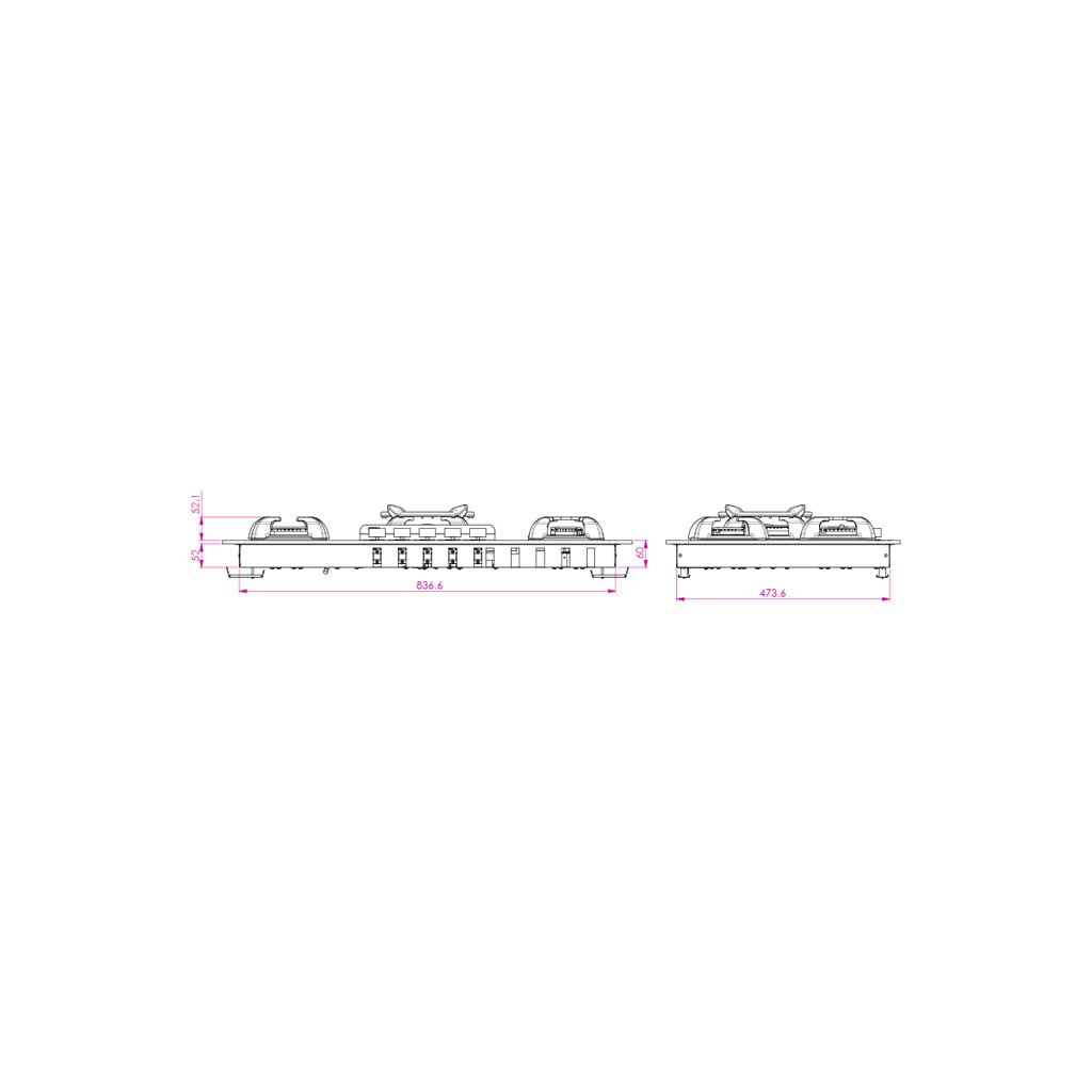 ابعاد برش (برای نصب توکار): ۸۴۰ × ۴۸۰ میلیمتر