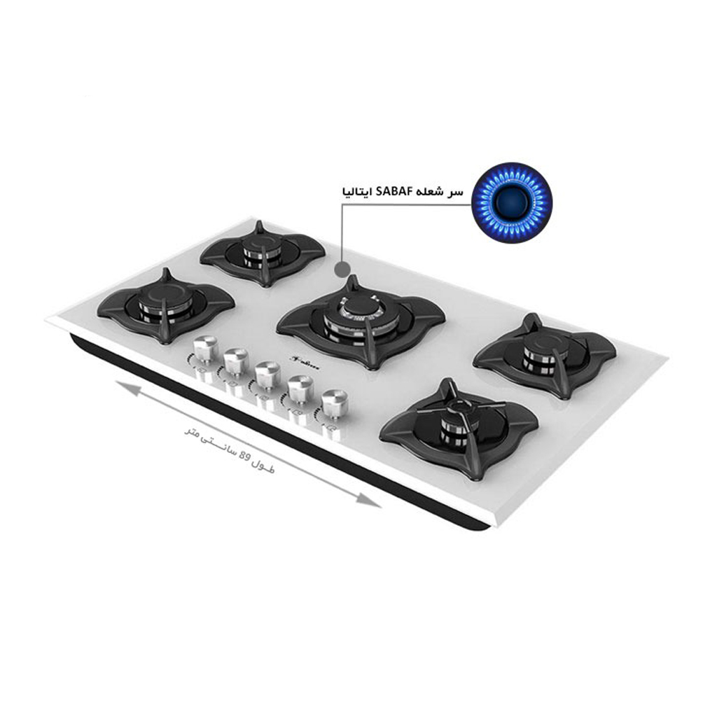 تعداد و آرایش شعله: پنج شعله (۱ عدد شعله پلوپز، ۱ عدد شعله بزرگ، ۲ عدد شعله متوسط، ۱ عدد شعله کوچک)