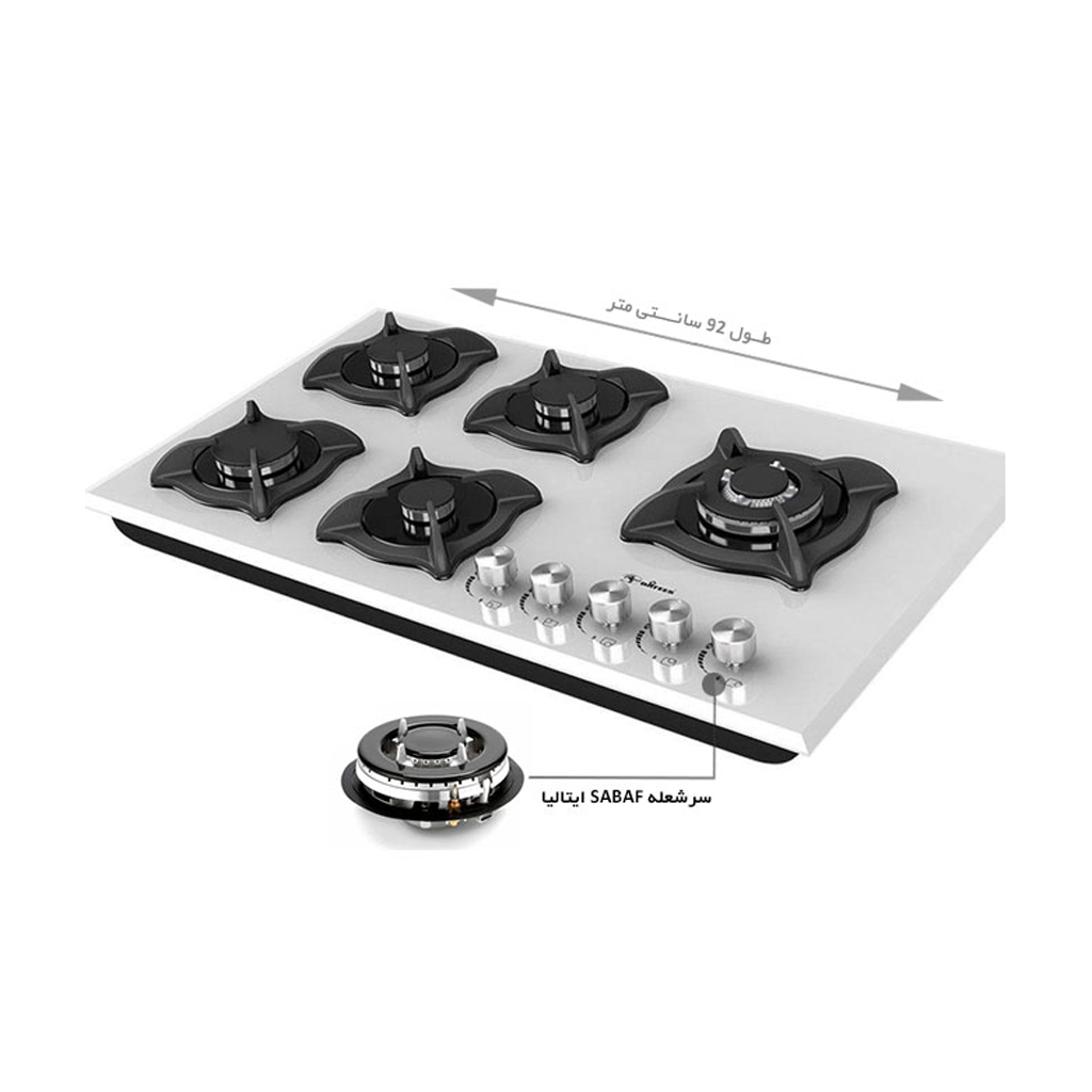 تعداد و آرایش شعله: پنج شعله (۱ عدد شعله پلوپز در سمت راست، ۱ عدد شعله بزرگ، ۲ عدد شعله متوسط، ۱ عدد شعله کوچک)
