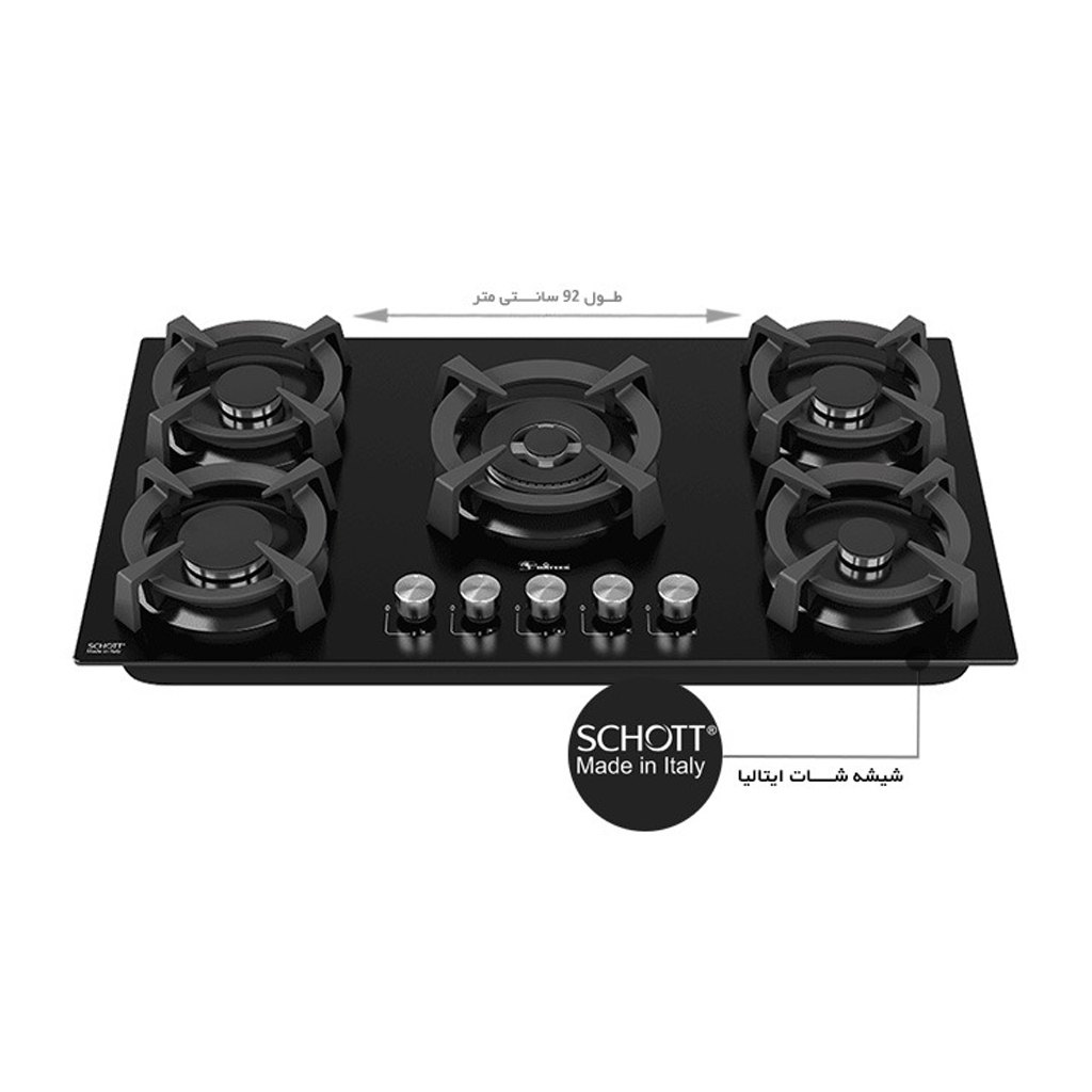 جنس صفحه: شیشه سکوریت شات ایتالیا (Schott) مقاوم در برابر حرارت و ضربه (ضخامت ۸ میلیمتر)