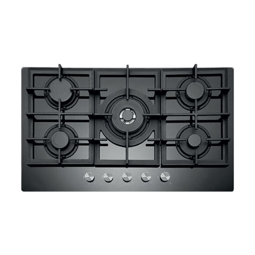 90cm glass hob orginal sabaf burners ith ffd with eok suupport & meta konbs 1 double ring burner 5.0kw 1 rapid burner 2 semi-rapid burners 1 auxiliary burner electric ignition cast iron pan support product size: 870 * 510 * 105mm