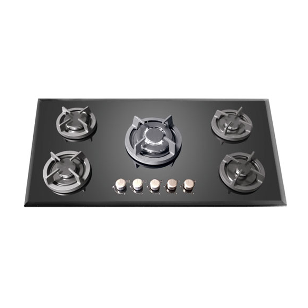 90cm glass hob orginal sabaf burners ith ffd with eok suupport & meta konbs 1 double ring burner 5.0kw 1 rapid burner 2 semi-rapid burners 1 auxiliary burner electric ignition cast iron pan support product size: 870 * 510 * 105mm