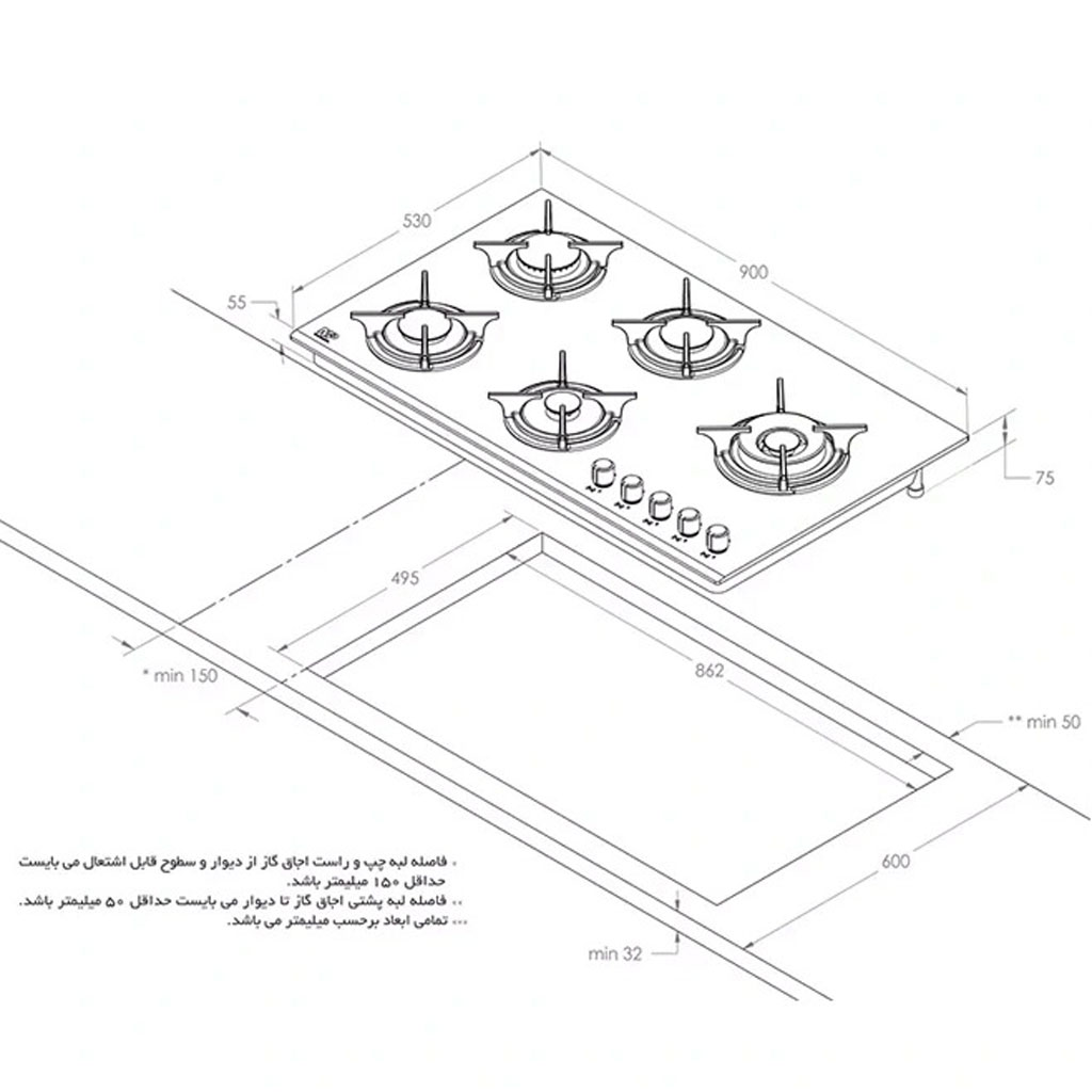 نوع محصول: گاز صفحهای رومیزی (Built-in Hob)