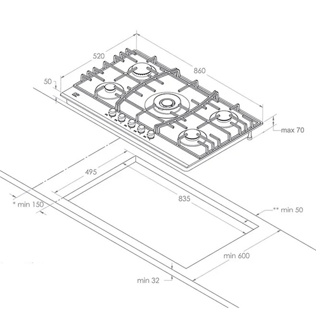نوع محصول: گاز صفحهای رومیزی (Built-in Hob)
