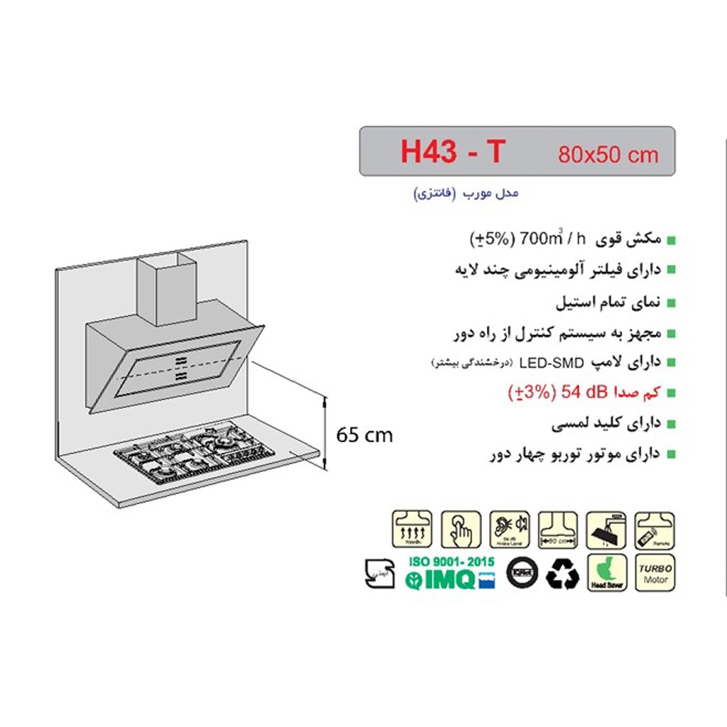 سایز هود: عرض ۸۰ سانتیمتر و عمق ۵۰ سانتیمتر.