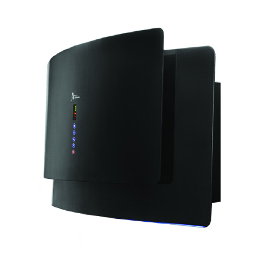 اولین چیزی که در نگاه به این هود جلب توجه می‌کند، نمای شیشه‌ای مشکی منحنی آن است. این انحنا، برخلاف طراحی‌های زاویه‌دار مرسوم، نرمی و سیالیتی خاص به خطوط دستگاه می‌بخشد و آن را به یک عنصر مجسمه‌وار و بسیار مدرن در آشپزخانه تبدیل می‌کند. شیشه سکوریت به‌کار رفته، مقاومت لازم در برابر حرارت و ضربه را تضمین می‌نماید. در مرکز این زیبایی، یک صفحه نمایشگر رنگی به همراه پنل لمسی قرار دارد که رابط کاربری پیشرفته و جذابی را فراهم می‌آورد و بر زیبایی تکنولوژیک محصول می‌افزاید.