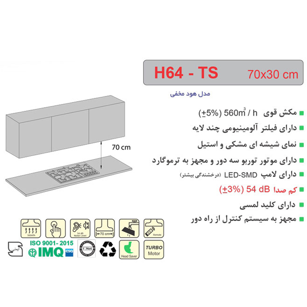 سایز هود: عرض ۷۰ سانتیمتر و عمق ۳۰ سانتیمتر