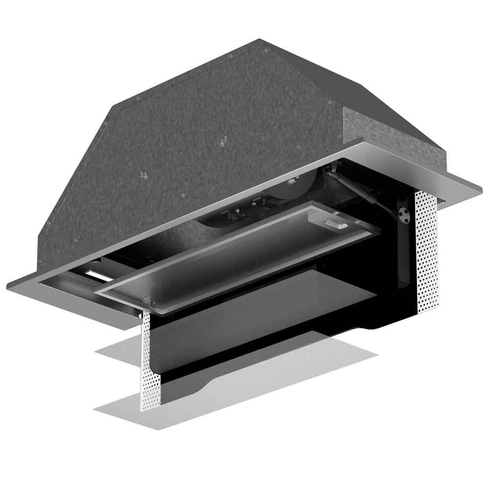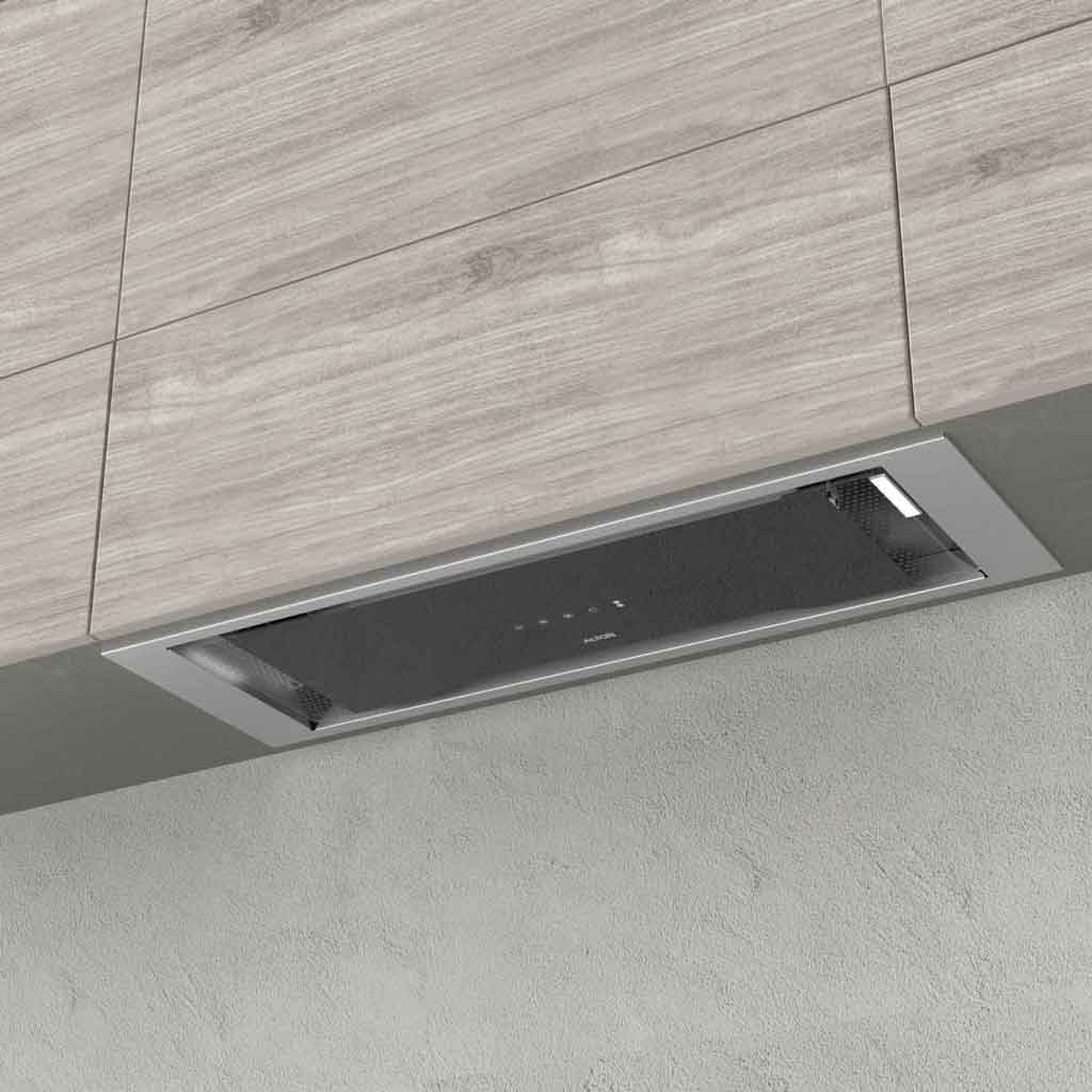 این هود با عرض ۹۰ سانتیمتر و نمای ترکیبی از شیشه سکوریت مشکی و فریم استیل، جلوهای لوکس و هماهنگ با انواع دکوراسیون آشپزخانه ایجاد میکند. شیشه مقاوم آن نه تنها در برابر حرارت و ضربه ایمن است، بلکه تمیز کردن آن را نیز بسیار آسان میسازد. ماهیت مخفی و نصب داخل کابینتی این هود، باعث میشود فضای باارزش آشپزخانه شما کاملاً حفظ شده و تنها در زمان نیاز، با آرامش و به لطف جک گازی نرم خود (Soft Open)، ظاهر شود.