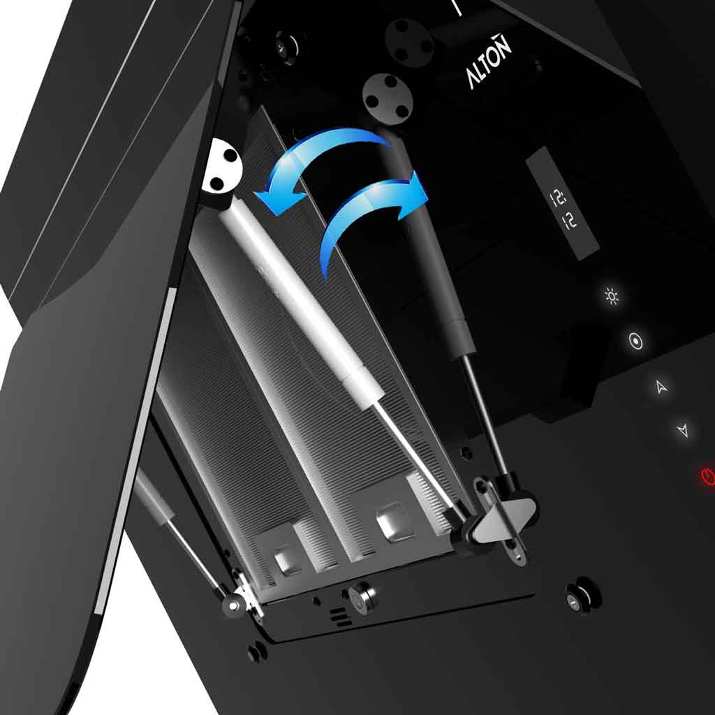 در طراحی آشپزخانههای مدرن، هر جزئی باید علاوه بر کارایی بالا، بیانگر سلیقه و زیباییشناسی صاحب خانه باشد. هود آلتون مدل H312 با درک این نیاز، یک انتخاب ایدهآل است. این هود با طراحی مورب و نمای شیشه سکوریت مشکی خود، همچون یک قطعه دکوراتیو لوکس به فضای آشپزخانه جلوه میبخشد، در حالی که در پس این ظاهر زیبا، قلبی تپنده از قدرت و فناوری نهفته است.