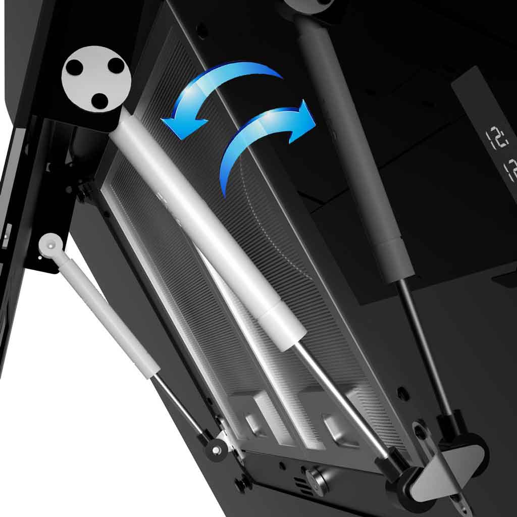 یکی از ویژگیهای برجسته این مدل، استفاده از دو عدد جک گازی برای درب آن است. این جکها باعث میشوند باز و بسته کردن درب هود به شکلی نرم، بیصدا و مقاوم انجام شود و تجربهای لذتبخش از تعامل با دستگاه را برای شما به ارمغان آورند. این طراحی، دوام و سهولت استفاده را به طور همزمان تضمین میکند.