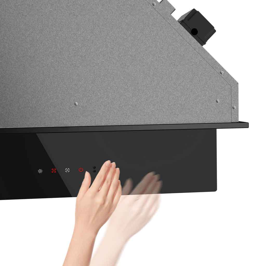 ویژگی برجسته این مدل، سنسور فرمان با حرکت دست است که کنترل هود را به تجربهیی مدرن و بهداشتی تبدیل میکند. تنها با یک حرکت دست، میتوانید دستگاه را کنترل کنید، بدون آنکه اثری از لمس بر روی سطح بینقص آن باقی بماند. افزون بر این، جک گازی آرام بازشو، باز و بسته شدن درب هود را به حرکتی نرم، بیصدا و مجلل مبدل ساخته که کاملاً با شخصیت لوکس محصول همخوانی دارد.