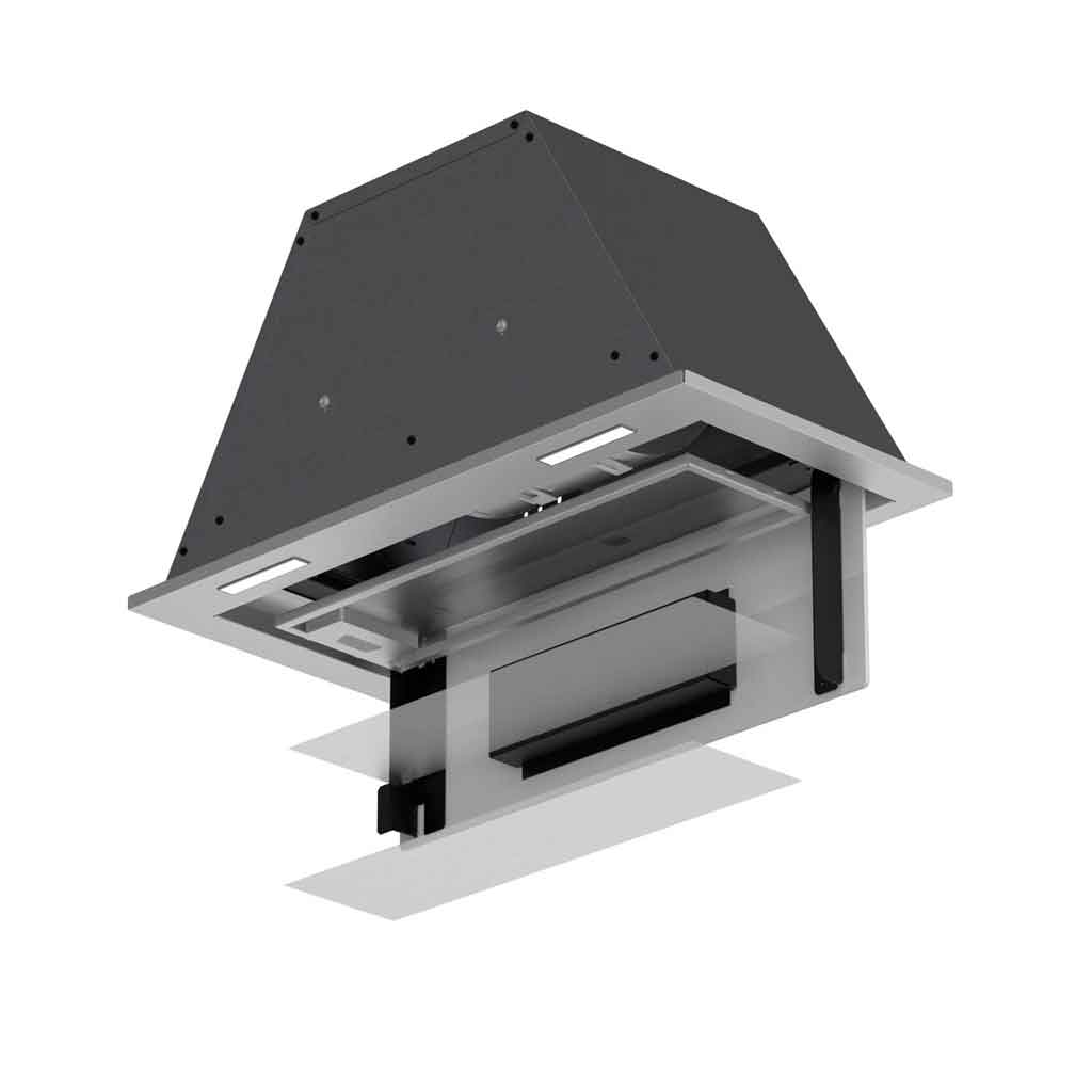 درون این ساختار ظریف، یک موتور فلزی توربو با ۵ دور قدرت مختلف جای گرفته است. این موتور قادر است با قدرتی معادل ۷۰۰ تا ۹۰۰ متر مکعب در ساعت، تمامی بخارات، دودها و بوهای نامطبوع را به سرعت از محیط بزداید. نکته قابل توجه، سطح صدای پایین (۴۸ تا ۵۸ دسیبل) آن است که اجازه میدهد حتی در اوج قدرت مکش، به راحتی با اعضای خانواده گفتوگو کنید و از صدای آرامشبخش خانه لذت ببرید.