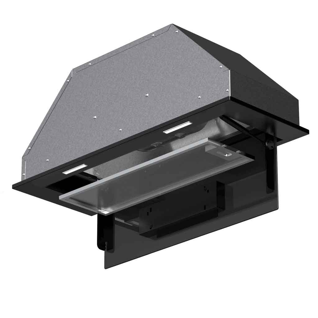 این هود با عرض ۷۰ سانتیمتر و طراحی کاملاً مخفی (توکار)، در دل کابینتهای آشپزخانه شما ناپدید میشود و تنها در زمان نیاز، با نمای شیشه سکوریت مشکی و چارچوب استیل خود، جلوهای لوکس و امروزی به فضا میبخشد. این طراحی نه تنها زیباست، بلکه به دلیل استفاده از شیشه مقاوم در برابر حرارت و ضربه، بسیار بادوام و کاربردی است.